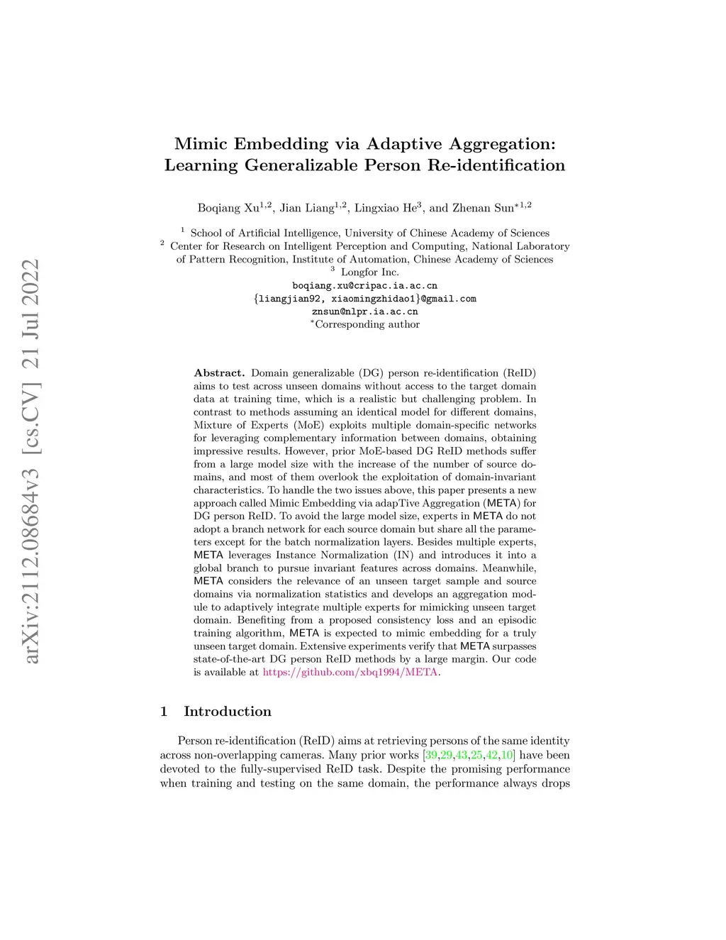 Mimic Embedding via Adaptive Aggregation: Learning Generalizable Person