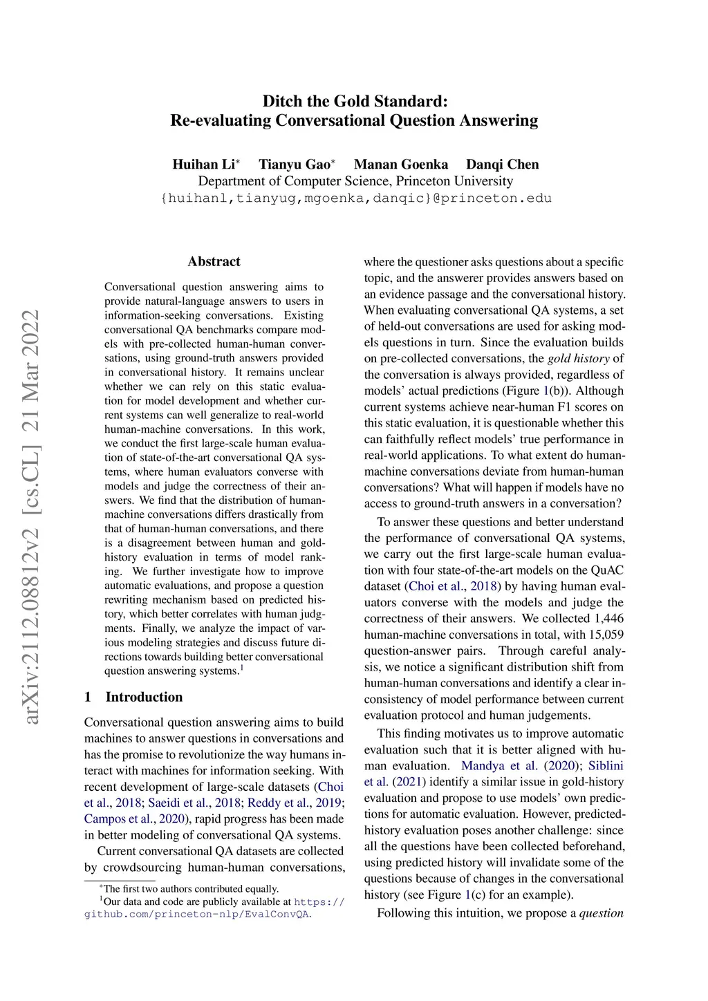 Ditch the Gold Standard: Re-evaluating Conversational Question Answering