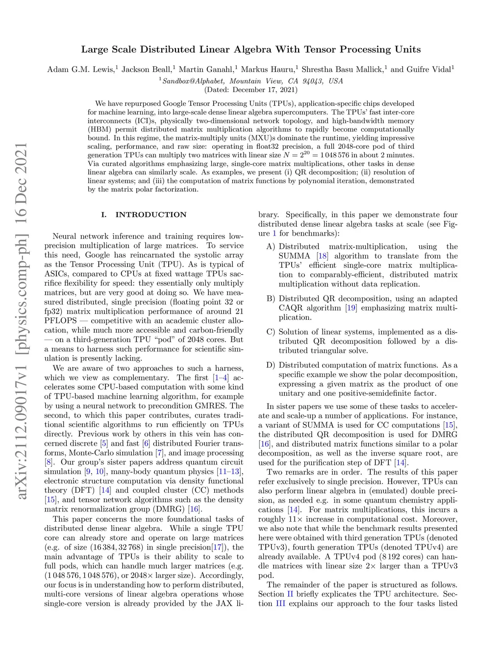 Large Scale Distributed Linear Algebra With Tensor Processing Units