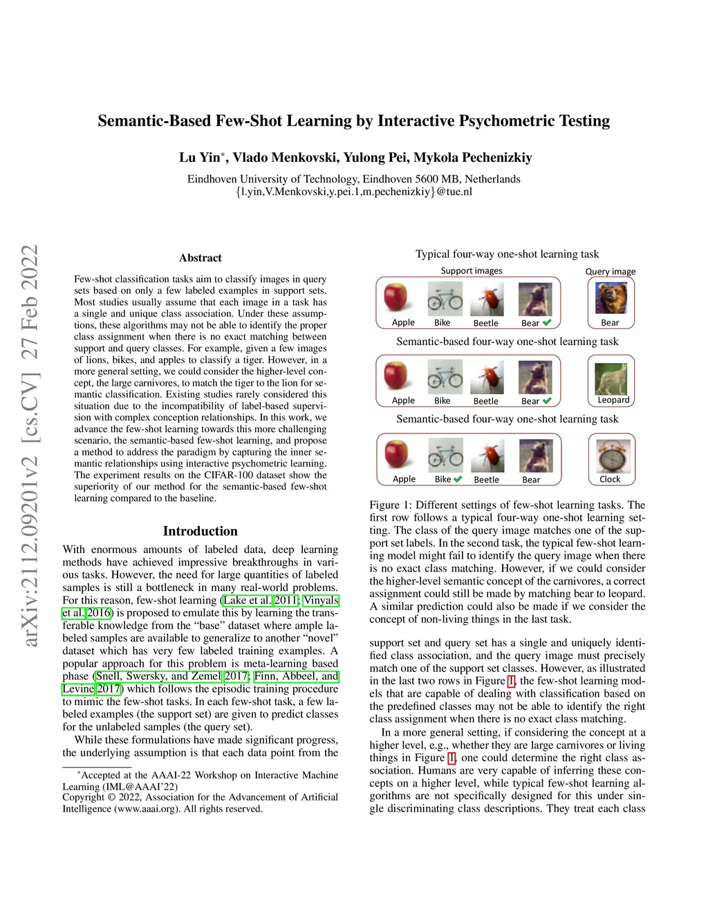 Semantic-Based Few-Shot Learning by Interactive Psychometric Testing