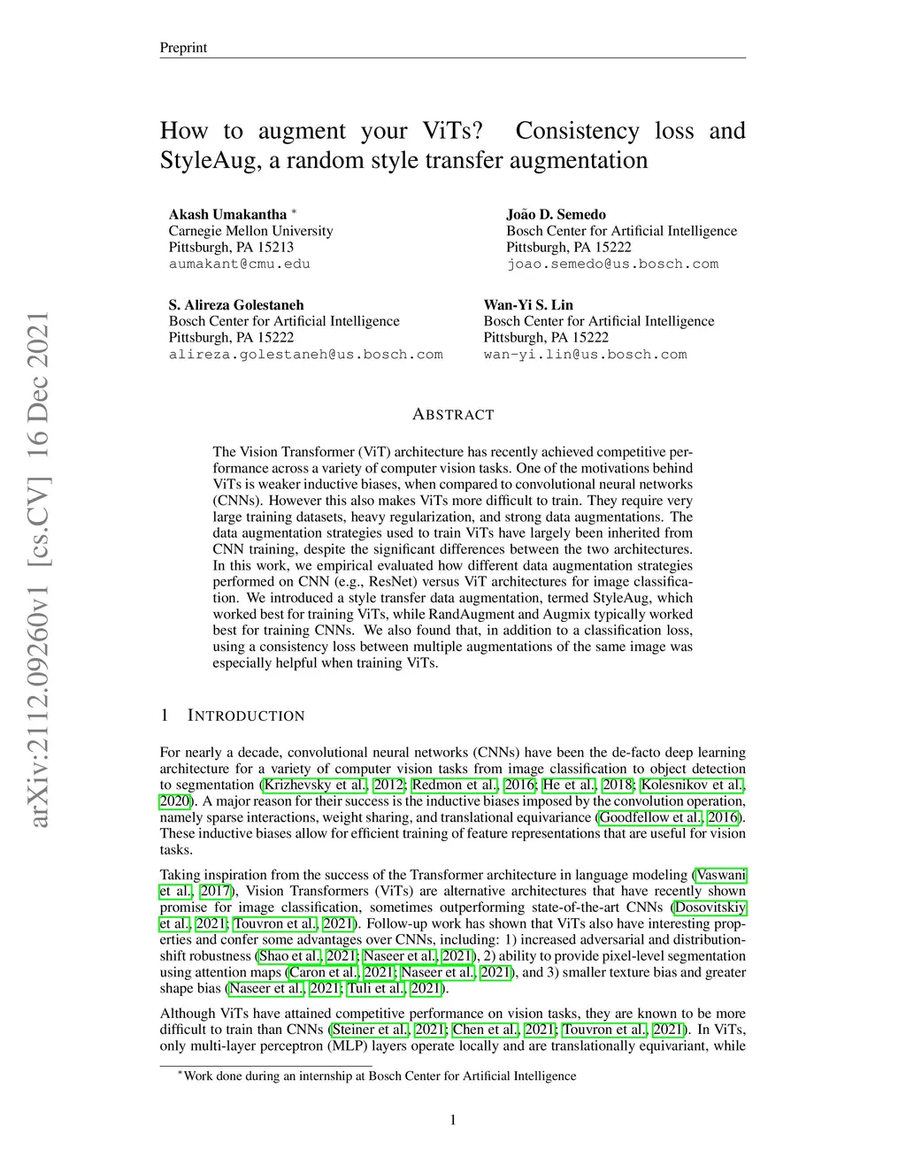 How to augment your ViTs? Consistency loss and StyleAug, a random style