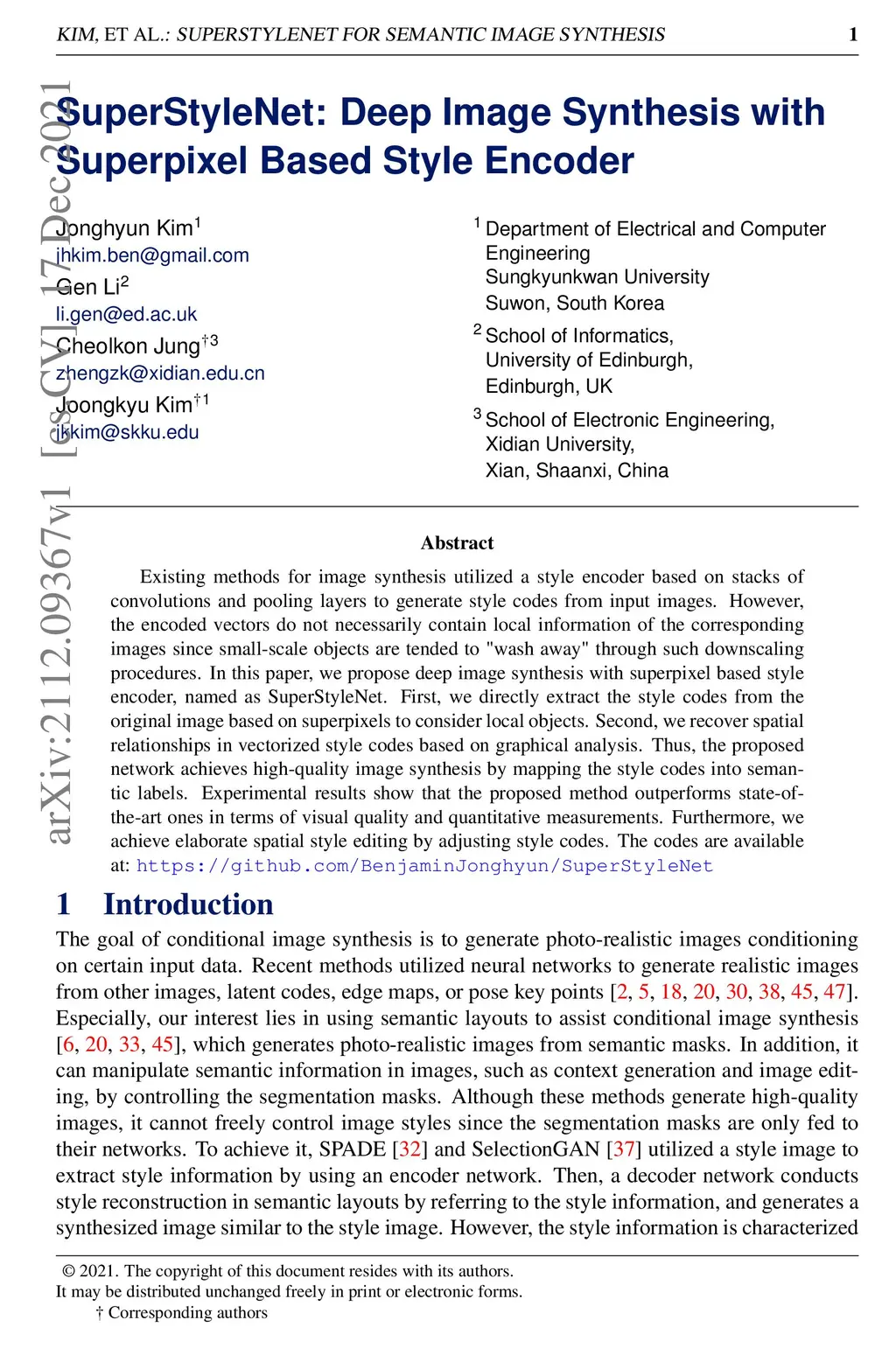 SuperStyleNet: Deep Image Synthesis with Superpixel Based Style Encoder