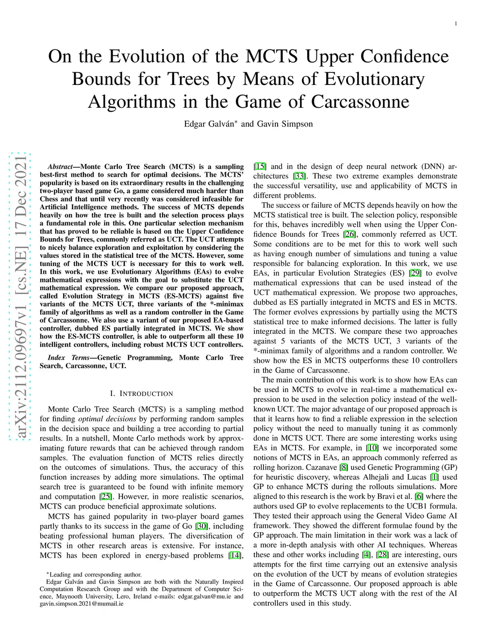 On the Evolution of the MCTS Upper Confidence Bounds for Trees by Means