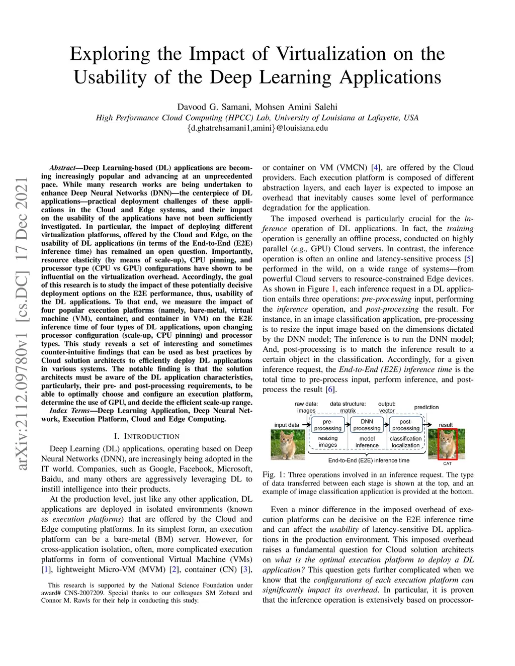 Deep Learning-based (DL) applications are becoming increasingly popular and advancing at an unprecedented pace. While many research works are being undertaken to enhance Deep Neural Networks (DNN) -- the centerpiece of DL applications -- practical deployment challenges of these applications in the Cloud and Edge systems, and their impact on the usability of the applications have not been sufficiently investigated. In particular, the impact of deploying different virtualization platforms, offered by the Cloud and Edge, on the usability of DL applications (in terms of the End-to-End (E2E) inference time) has remained an open question. Importantly, resource elasticity (by means of scale-up), CPU pinning, and processor type (CPU vs GPU) configurations have shown to be influential on the virtualization overhead. Accordingly, the goal of this research is to study the impact of these potentially decisive deployment options on the E2E performance, thus, usability of the DL applications. To that end, we measure the impact of four popular execution platforms (namely, bare-metal, virtual machine (VM), container, and container in VM) on the E2E inference time of four types of DL applications, upon changing processor configuration (scale-up, CPU pinning) and processor types. This study reveals a set of interesting and sometimes counter-intuitive findings that can be used as best practices by Cloud solution architects to efficiently deploy DL applications in various systems. The notable finding is that the solution architects must be aware of the DL application characteristics, particularly, their pre- and post-processing requirements, to be able to optimally choose and configure an execution platform, determine the use of GPU, and decide the efficient scale-up range.