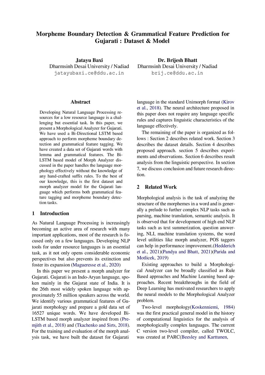 Morpheme Boundary Detection & Grammatical Feature Prediction for