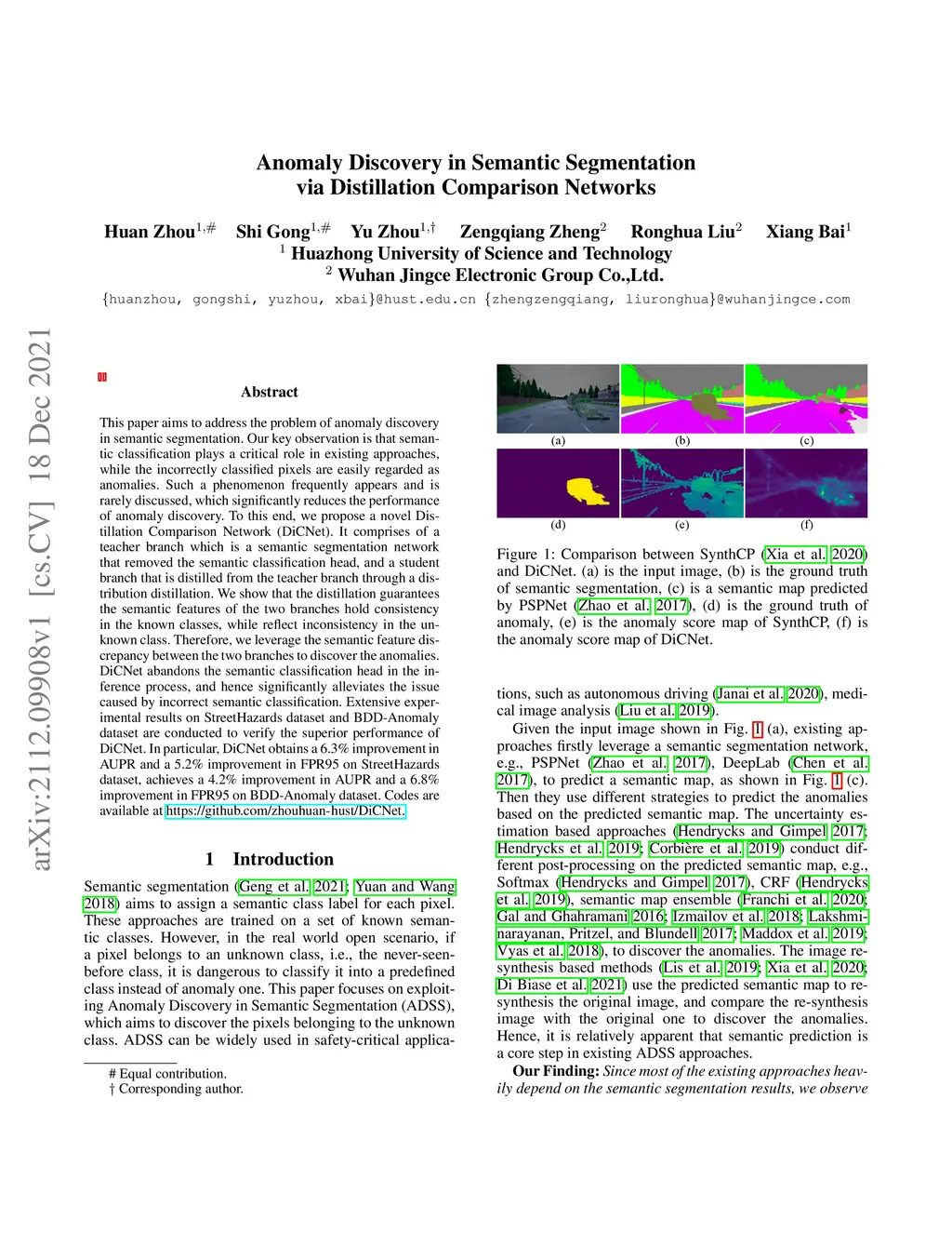 Anomaly Discovery in Semantic Segmentation via Distillation Comparison