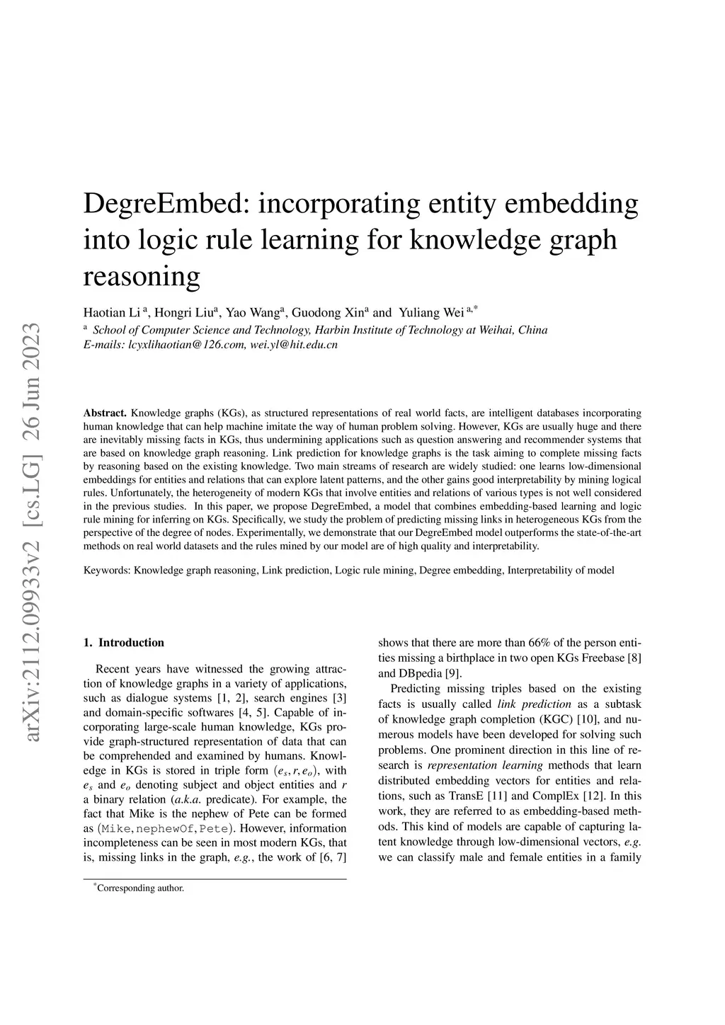 DegreEmbed: incorporating entity embedding into logic rule learning for