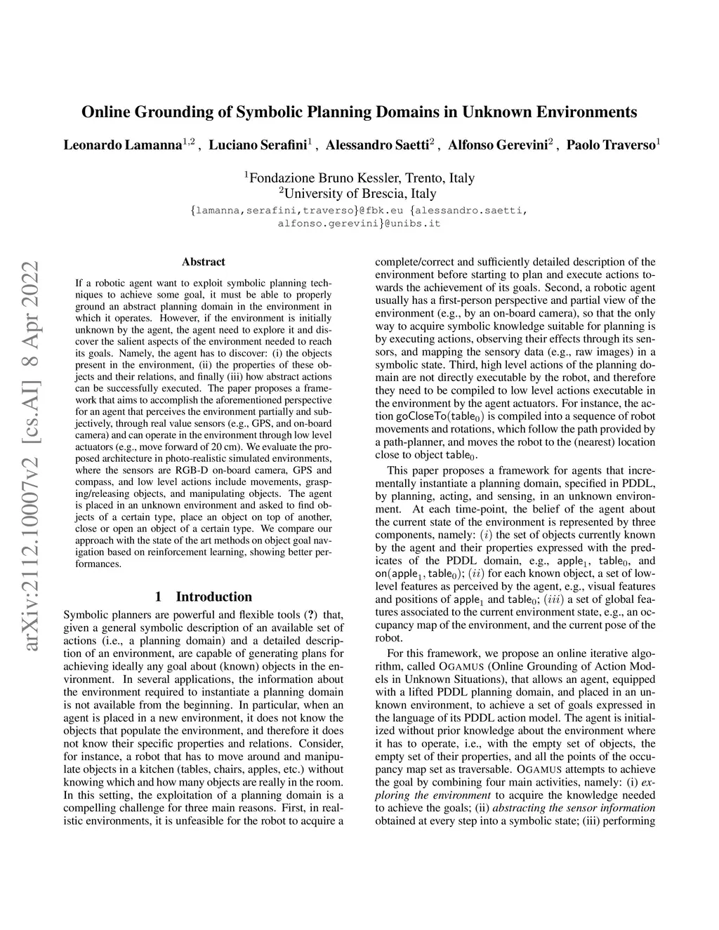 If a robotic agent wants to exploit symbolic planning techniques to achieve some goal, it must be able to properly ground an abstract planning domain in the environment in which it operates. However, if the environment is initially unknown by the agent, the agent needs to explore it and discover the salient aspects of the environment needed to reach its goals. Namely, the agent has to discover: (i) the objects present in the environment, (ii) the properties of these objects and their relations, and finally (iii) how abstract actions can be successfully executed. The paper proposes a framework that aims to accomplish the aforementioned perspective for an agent that perceives the environment partially and subjectively, through real value sensors (e.g., GPS, and on-board camera) and can operate in the environment through low level actuators (e.g., move forward of 20 cm). We evaluate the proposed architecture in photo-realistic simulated environments, where the sensors are RGB-D on-board camera, GPS and compass, and low level actions include movements, grasping/releasing objects, and manipulating objects. The agent is placed in an unknown environment and asked to find objects of a certain type, place an object on top of another, close or open an object of a certain type. We compare our approach with the state of the art methods on object goal navigation based on reinforcement learning, showing better performances.