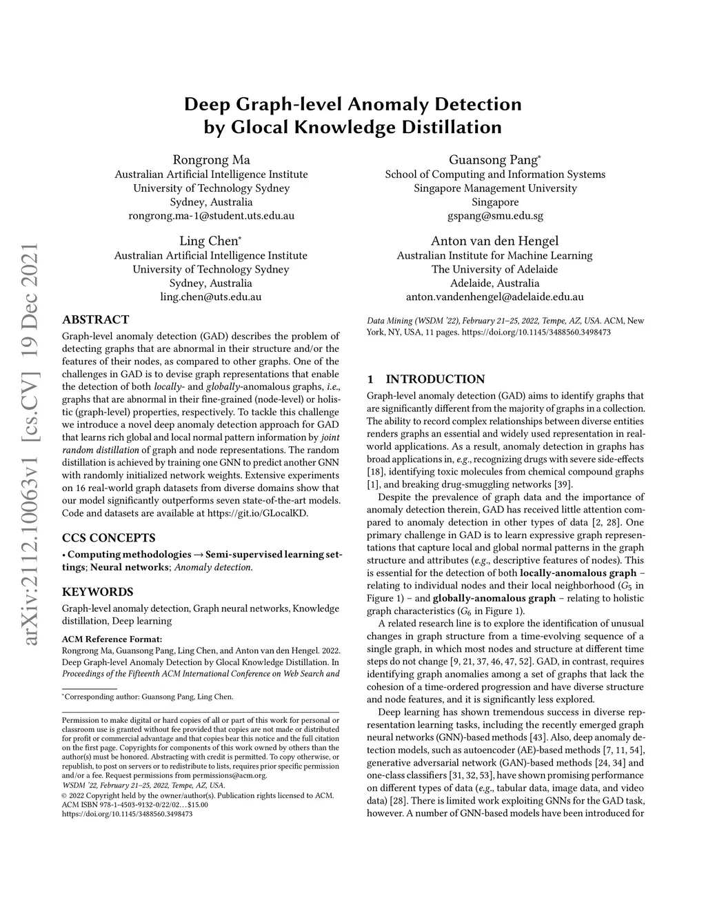 Deep Graph-level Anomaly Detection by Glocal Knowledge Distillation
