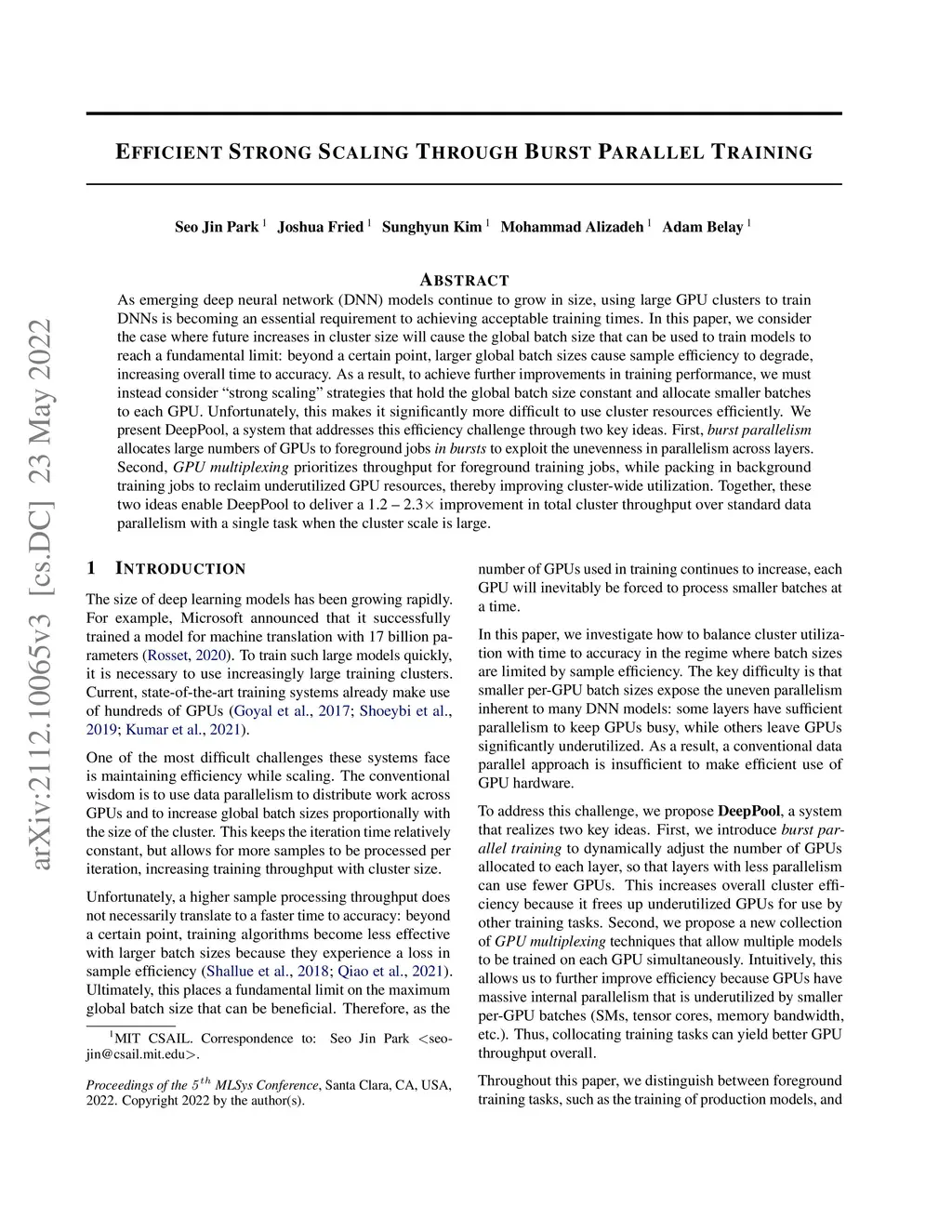 Efficient Strong Scaling Through Burst Parallel Training