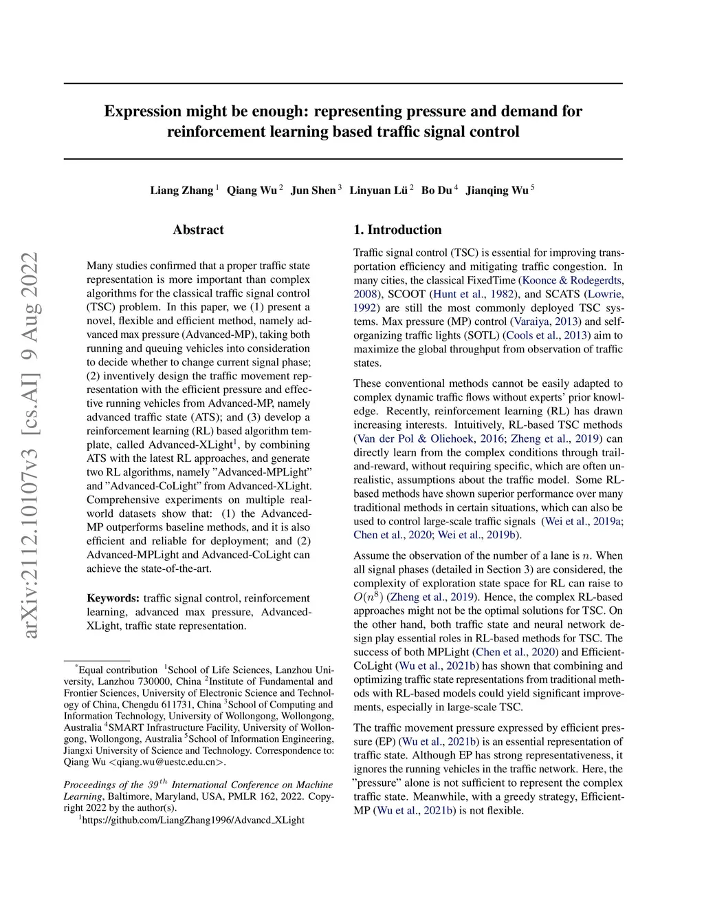 Many studies confirmed that a proper traffic state representation is more important than complex algorithms for the classical traffic signal control (TSC) problem. In this paper, we (1) present a novel, flexible and efficient method, namely advanced max pressure (Advanced-MP), taking both running and queuing vehicles into consideration to decide whether to change current signal phase; (2) inventively design the traffic movement representation with the efficient pressure and effective running vehicles from Advanced-MP, namely advanced traffic state (ATS); and (3) develop a reinforcement learning (RL) based algorithm template, called Advanced-XLight, by combining ATS with the latest RL approaches, and generate two RL algorithms, namely "Advanced-MPLight" and "Advanced-CoLight" from Advanced-XLight. Comprehensive experiments on multiple real-world datasets show that: (1) the Advanced-MP outperforms baseline methods, and it is also efficient and reliable for deployment; and (2) Advanced-MPLight and Advanced-CoLight can achieve the state-of-the-art.