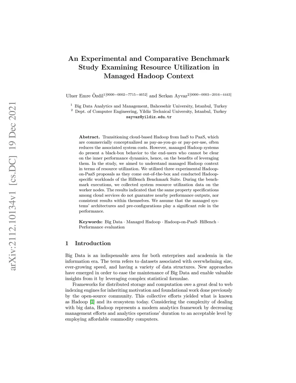 Transitioning cloud-based Hadoop from IaaS to PaaS, which are commercially conceptualized as pay-as-you-go or pay-per-use, often reduces the associated system costs. However, managed Hadoop systems do present a black-box behavior to the end-users who cannot be clear on the inner performance dynamics, hence, on the benefits of leveraging them. In the study, we aimed to understand managed Hadoop context in terms of resource utilization. We utilized three experimental Hadoop-on-PaaS proposals as they come out-of-the-box and conducted Hadoop specific workloads of the HiBench Benchmark Suite. During the benchmark executions, we collected system resource utilization data on the worker nodes. The results indicated that the same property specifications among cloud services do not guarantee nearby performance outputs, nor consistent results within themselves. We assume that the managed systems' architectures and pre-configurations play a significant role in the performance.