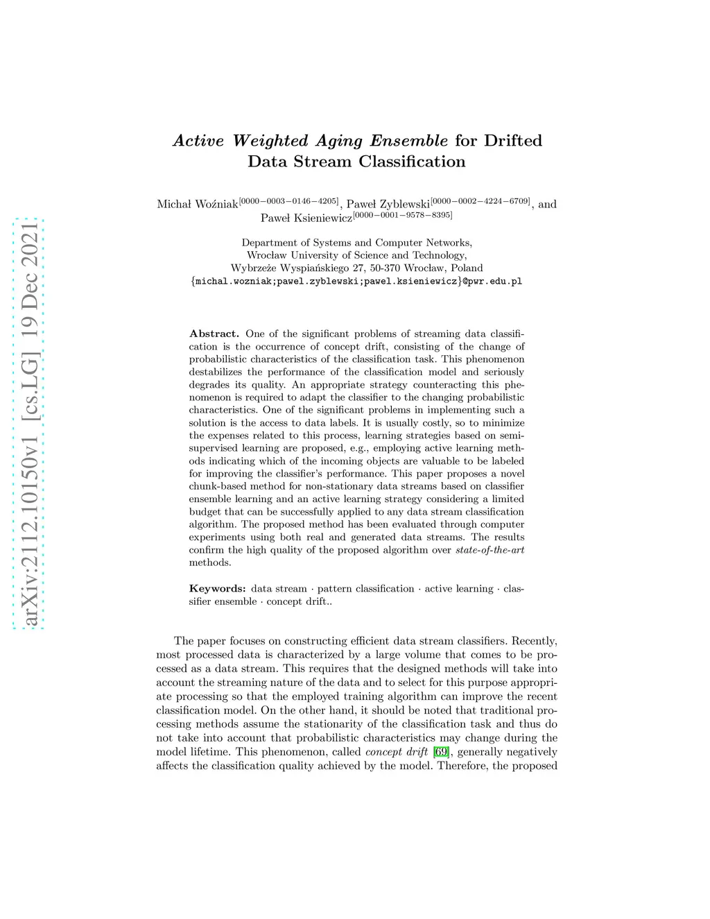Active Weighted Aging Ensemble for Drifted Data Stream Classification