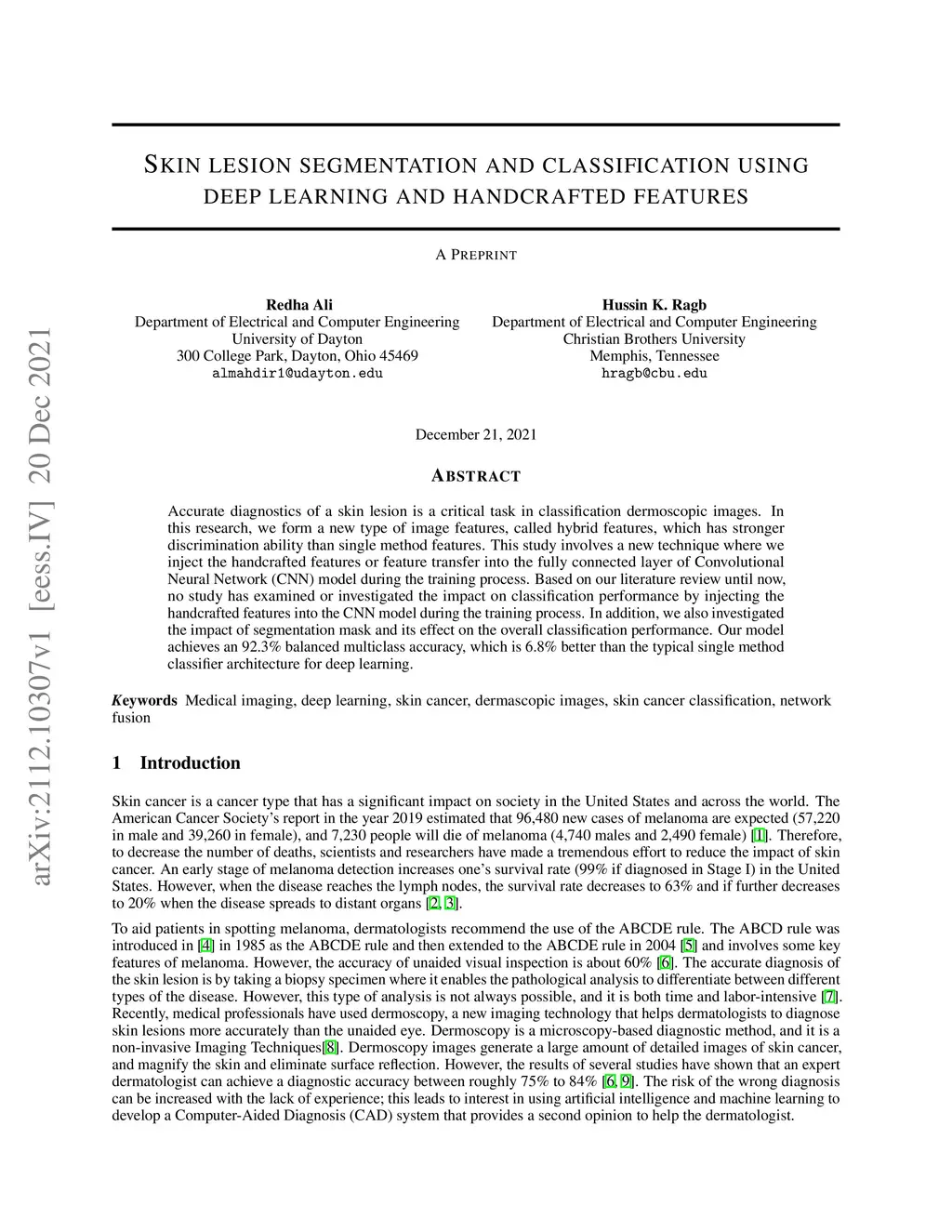 Skin lesion segmentation and classification using deep learning and