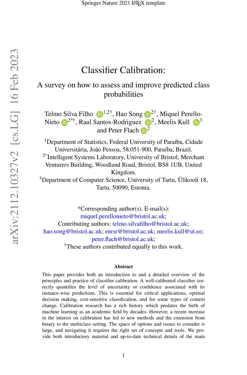 This paper provides both an introduction to and a detailed overview of the principles and practice of classifier calibration. A well-calibrated classifier correctly quantifies the level of uncertainty or confidence associated with its instance-wise predictions. This is essential for critical applications, optimal decision making, cost-sensitive classification, and for some types of context change. Calibration research has a rich history which predates the birth of machine learning as an academic field by decades. However, a recent increase in the interest on calibration has led to new methods and the extension from binary to the multiclass setting. The space of options and issues to consider is large, and navigating it requires the right set of concepts and tools. We provide both introductory material and up-to-date technical details of the main concepts and methods, including proper scoring rules and other evaluation metrics, visualisation approaches, a comprehensive account of post-hoc calibration methods for binary and multiclass classification, and several advanced topics.