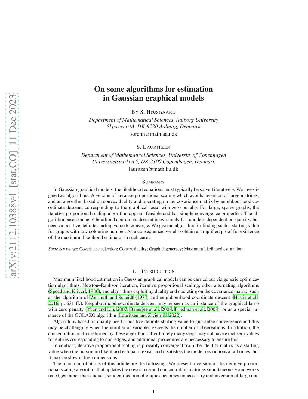 On some algorithms for estimation in Gaussian graphical models