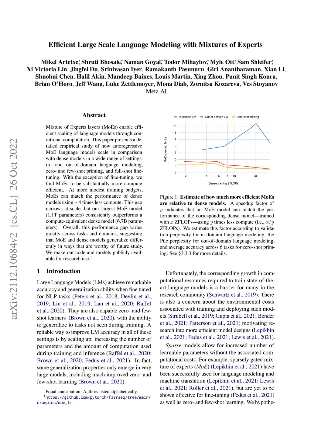 Efficient Large Scale Language Modeling with Mixtures of Experts