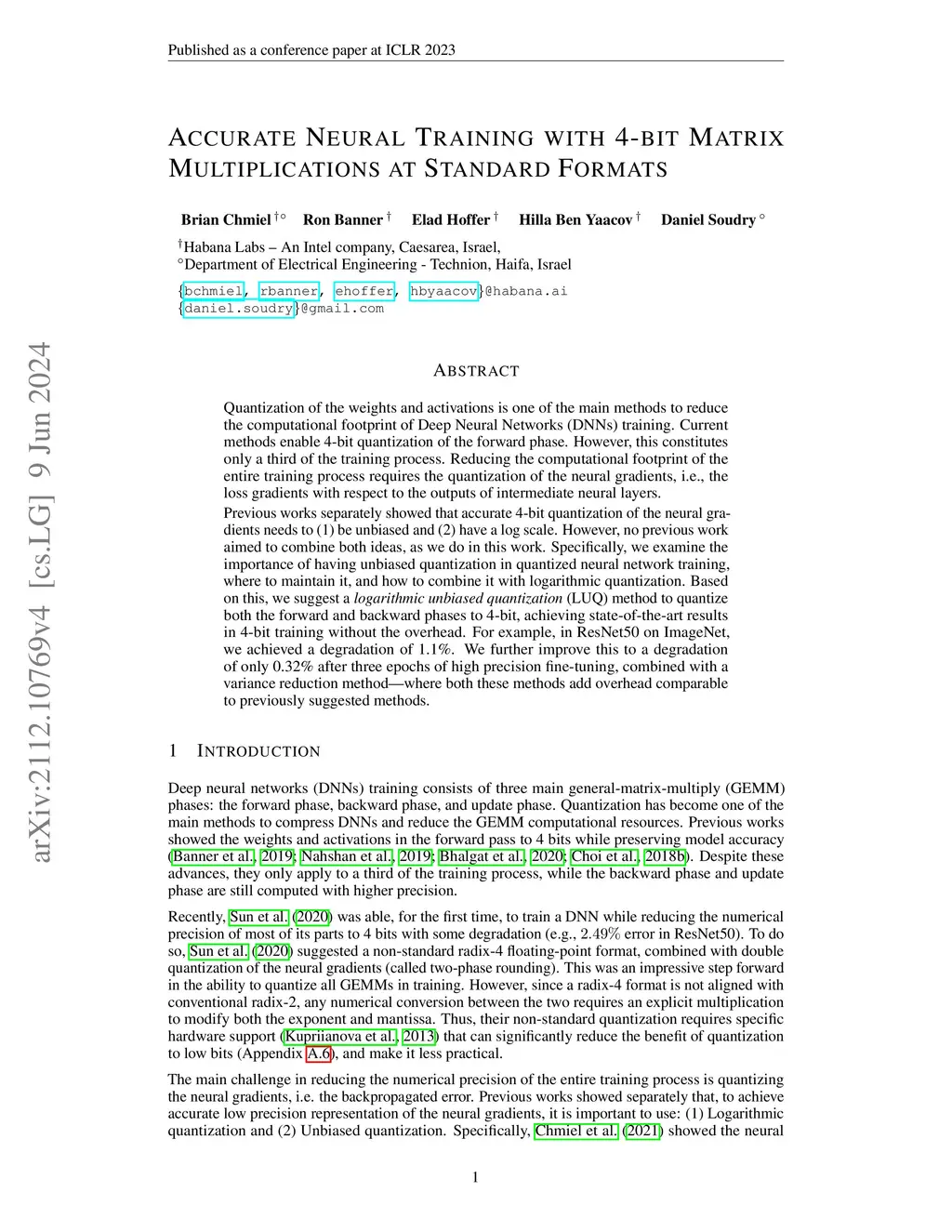 Logarithmic Unbiased Quantization: Simple 4-bit Training in Deep