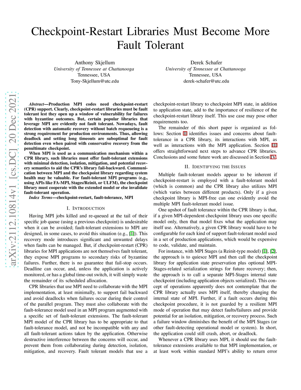 Production MPI codes need checkpoint-restart (CPR) support. Clearly, checkpoint-restart libraries must be fault tolerant lest they open up a window of vulnerability for failures with byzantine outcomes. But, certain popular libraries that leverage MPI are evidently not fault tolerant. Nowadays, fault detection with automatic recovery without batch requeueing is a strong requirement for production environments. Thus, allowing deadlock and setting long timeouts are suboptimal for fault detection even when paired with conservative recovery from the penultimate checkpoint. When MPI is used as a communication mechanism within a CPR library, such libraries must offer fault-tolerant extensions with minimal detection, isolation, mitigation, and potential recovery semantics to aid the CPR's library fail-backward. Communication between MPI and the checkpoint library regarding system health may be valuable. For fault-tolerant MPI programs (e.g., using APIs like FA-MPI, Stages/Reinit, or ULFM), the checkpoint library must cooperate with the extended model or else invalidate fault-tolerant operation.