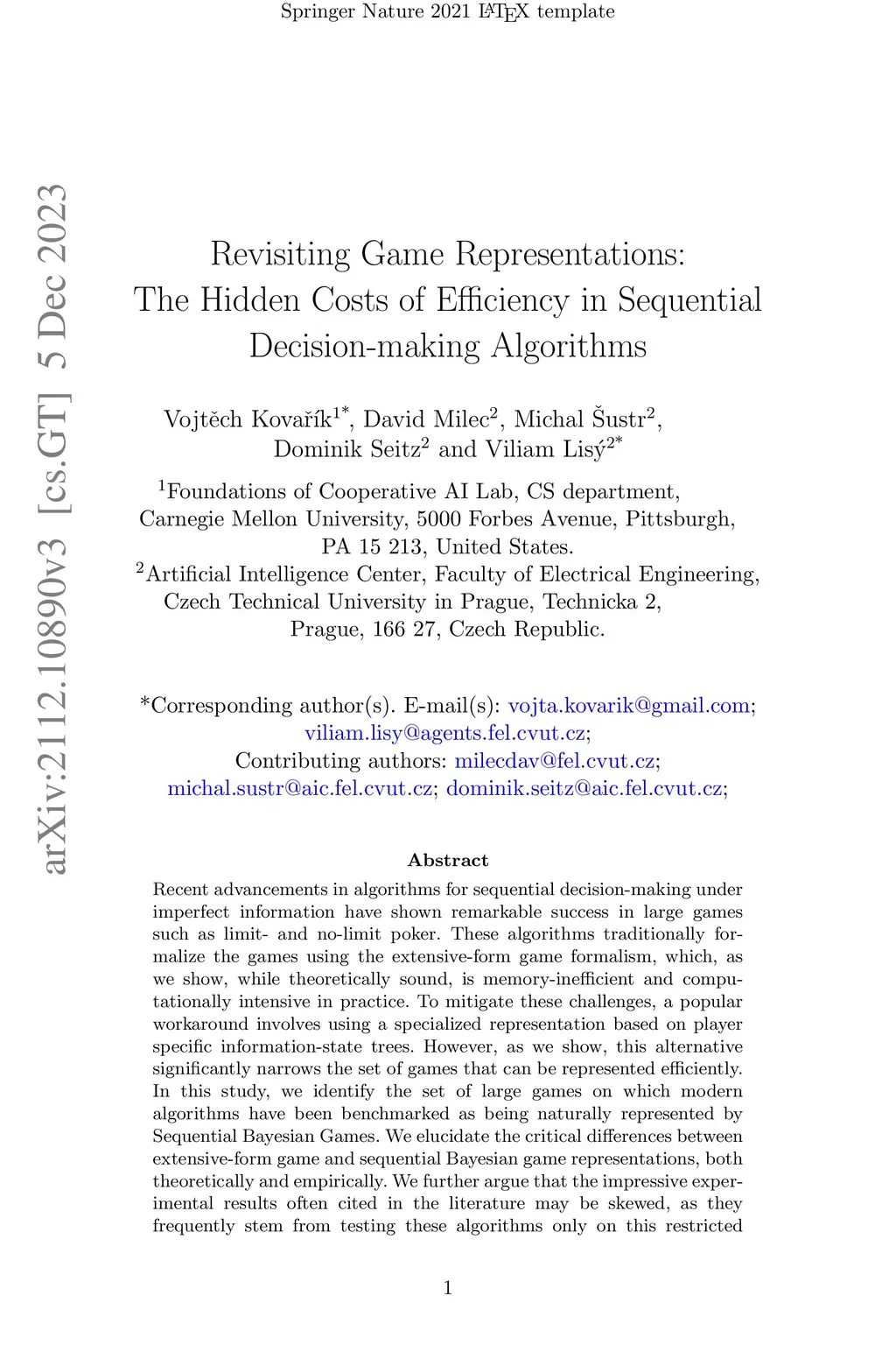 Recent advancements in algorithms for sequential decision-making under imperfect information have shown remarkable success in large games such as limit- and no-limit poker. These algorithms traditionally formalize the games using the extensive-form game formalism, which, as we show, while theoretically sound, is memory-inefficient and computationally intensive in practice. To mitigate these challenges, a popular workaround involves using a specialized representation based on player specific information-state trees. However, as we show, this alternative significantly narrows the set of games that can be represented efficiently. In this study, we identify the set of large games on which modern algorithms have been benchmarked as being naturally represented by Sequential Bayesian Games. We elucidate the critical differences between extensive-form game and sequential Bayesian game representations, both theoretically and empirically. We further argue that the impressive experimental results often cited in the literature may be skewed, as they frequently stem from testing these algorithms only on this restricted class of games. By understanding these nuances, we aim to guide future research in developing more universally applicable and efficient algorithms for sequential decision-making under imperfect information.