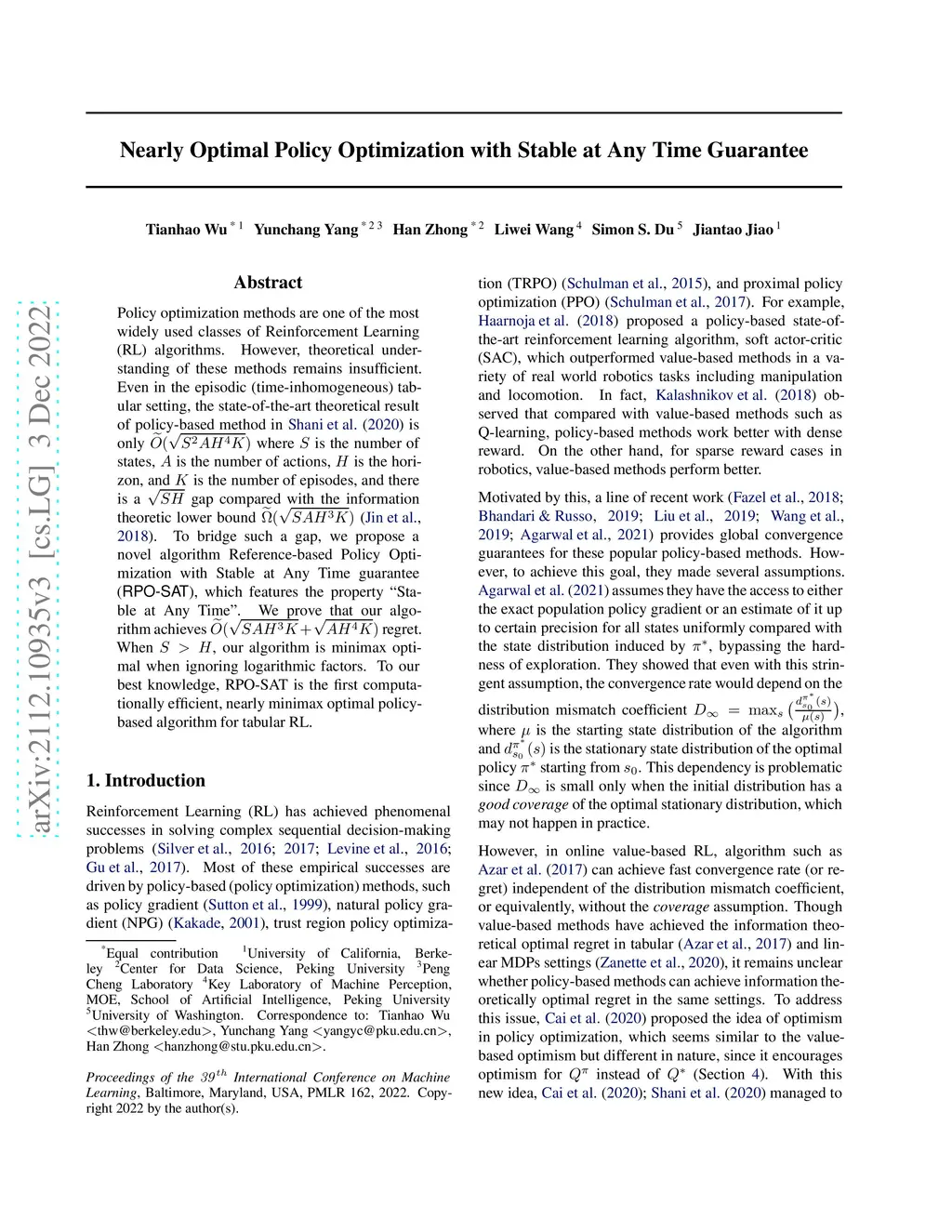 Nearly Optimal Policy Optimization with Stable at Any Time Guarantee