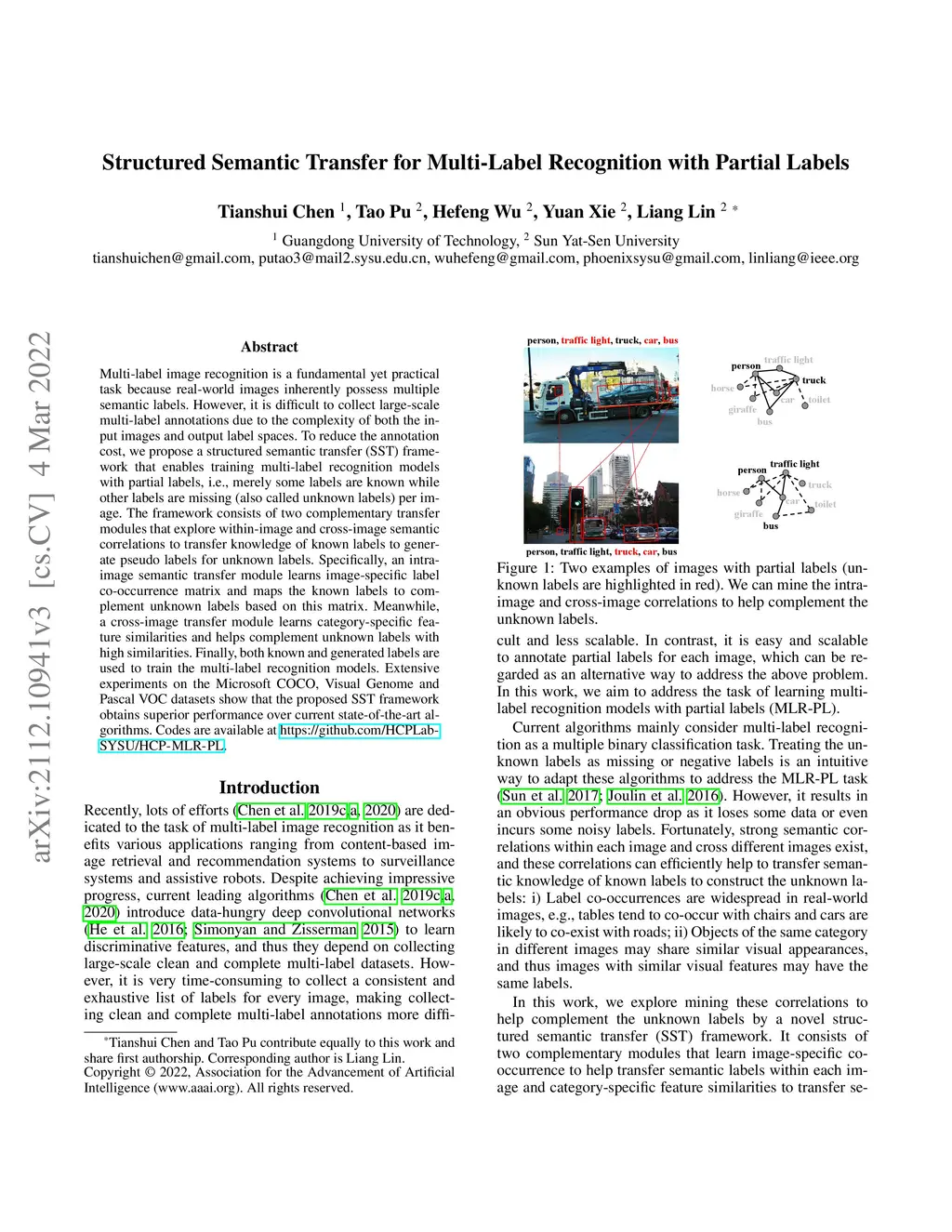 Structured Semantic Transfer for Multi-Label Recognition with Partial