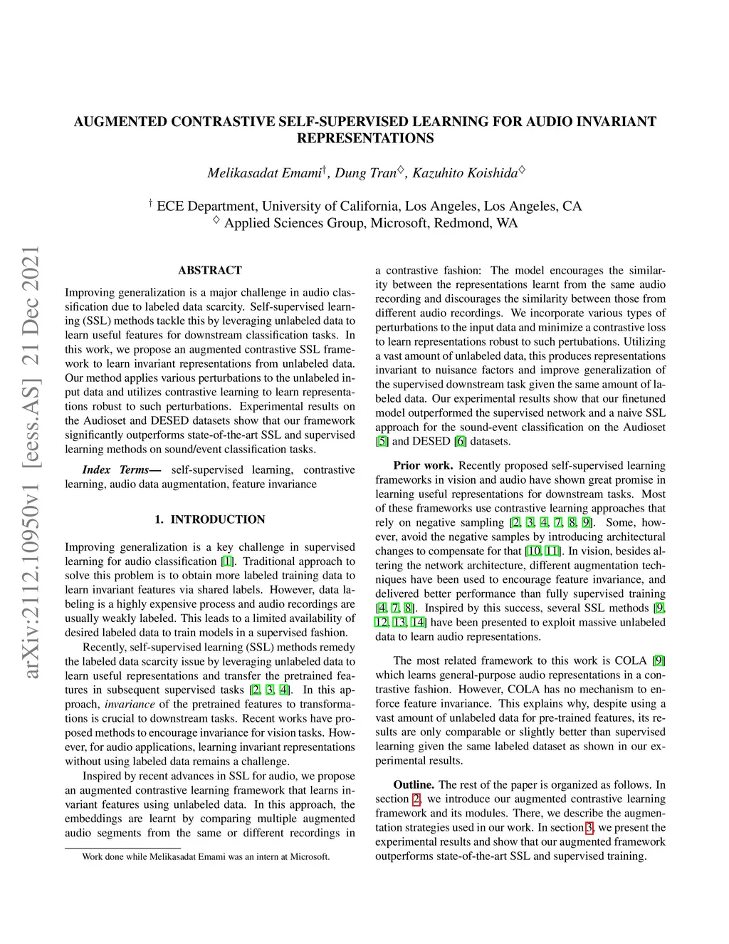 Augmented Contrastive Self-Supervised Learning for Audio Invariant