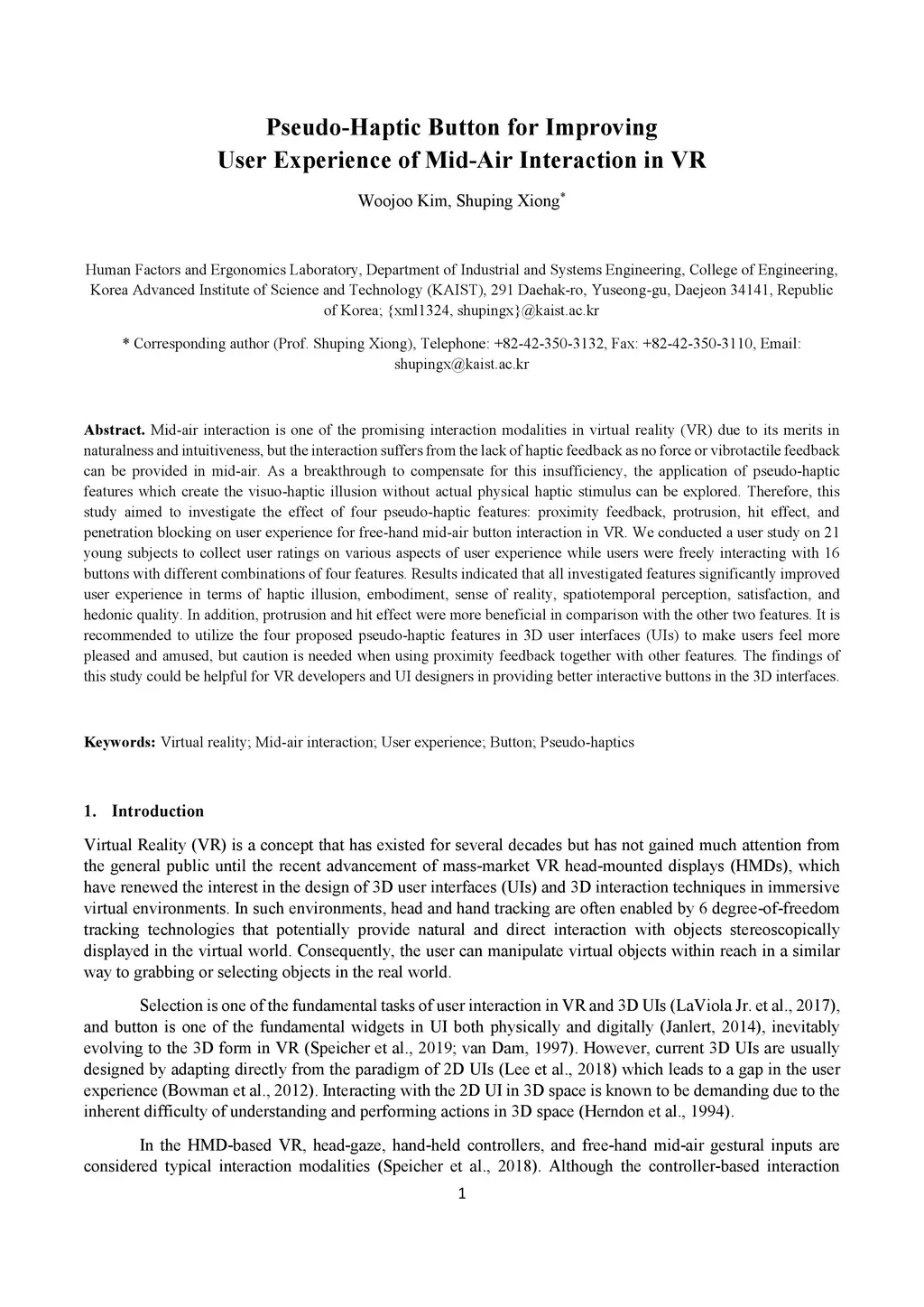 Pseudo-Haptic Button for Improving User Experience of Mid-Air