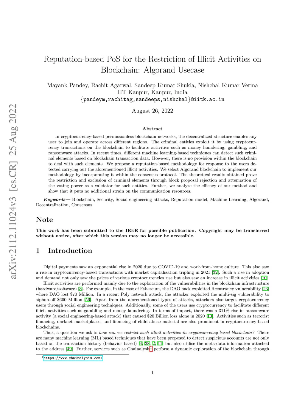 Reputation-based PoS for the Restriction of Illicit Activities on Blockchain: Algorand Usecase