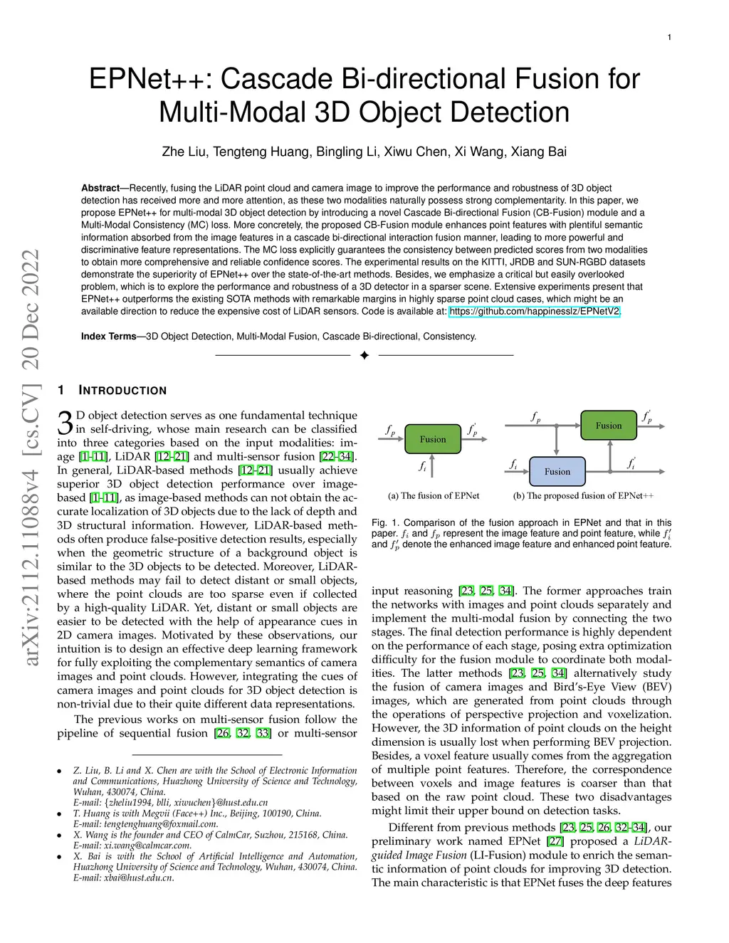 EPNet++: Cascade Bi-directional Fusion for Multi-Modal 3D Object