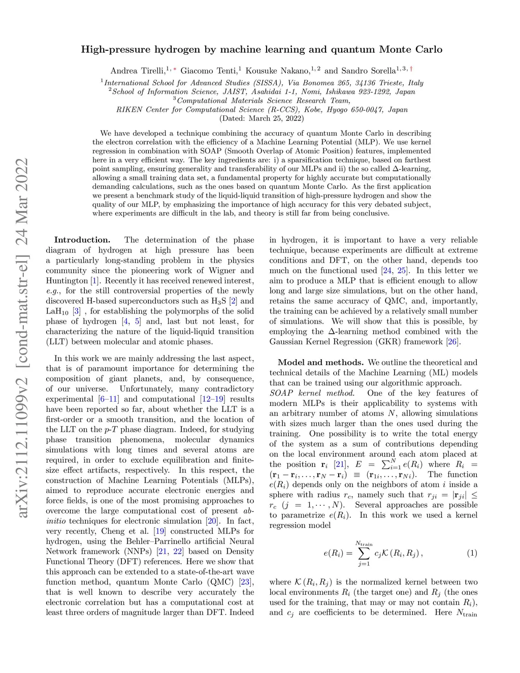 We have developed a technique combining the accuracy of quantum Monte Carlo in describing the electron correlation with the efficiency of a Machine Learning Potential (MLP). We use kernel regression in combination with SOAP (Smooth Overlap of Atomic Position) features, implemented here in a very efficient way. The key ingredients are: i) a sparsification technique, based on farthest point sampling, ensuring generality and transferability of our MLPs and ii) the so called -learning, allowing a small training data set, a fundamental property for highly accurate but computationally demanding calculations, such as the ones based on quantum Monte Carlo. As the first application we present a benchmark study of the liquid-liquid transition of high-pressure hydrogen and show the quality of our MLP, by emphasizing the importance of high accuracy for this very debated subject, where experiments are difficult in the lab, and theory is still far from being conclusive.
