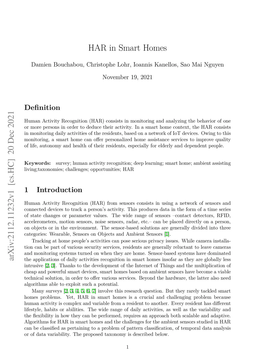 Human Activity Recognition (HAR) in Smart Homes