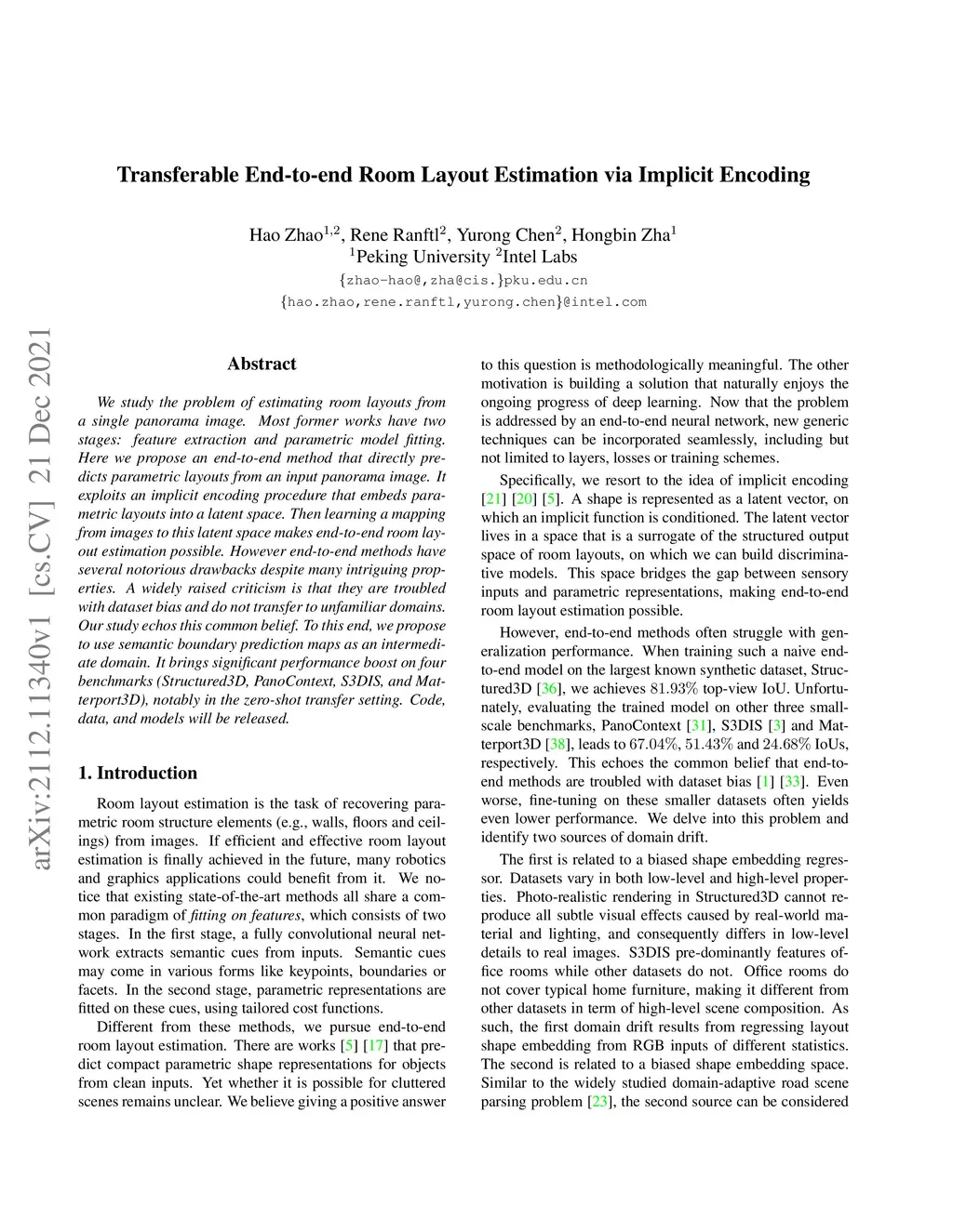Transferable End-to-end Room Layout Estimation via Implicit Encoding