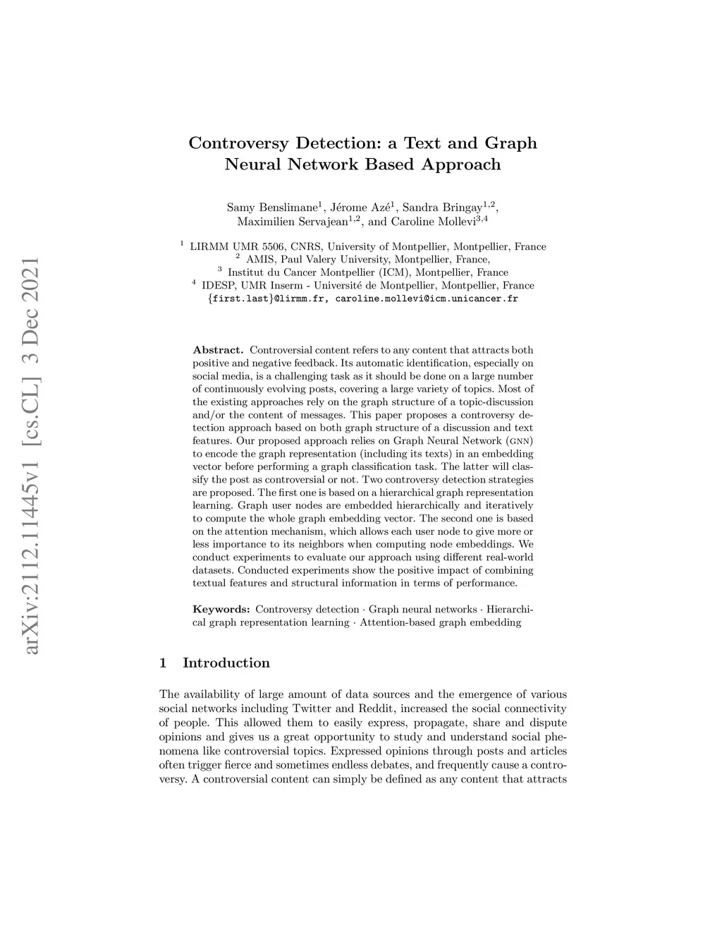 Controversy Detection: a Text and Graph Neural Network Based Approach
