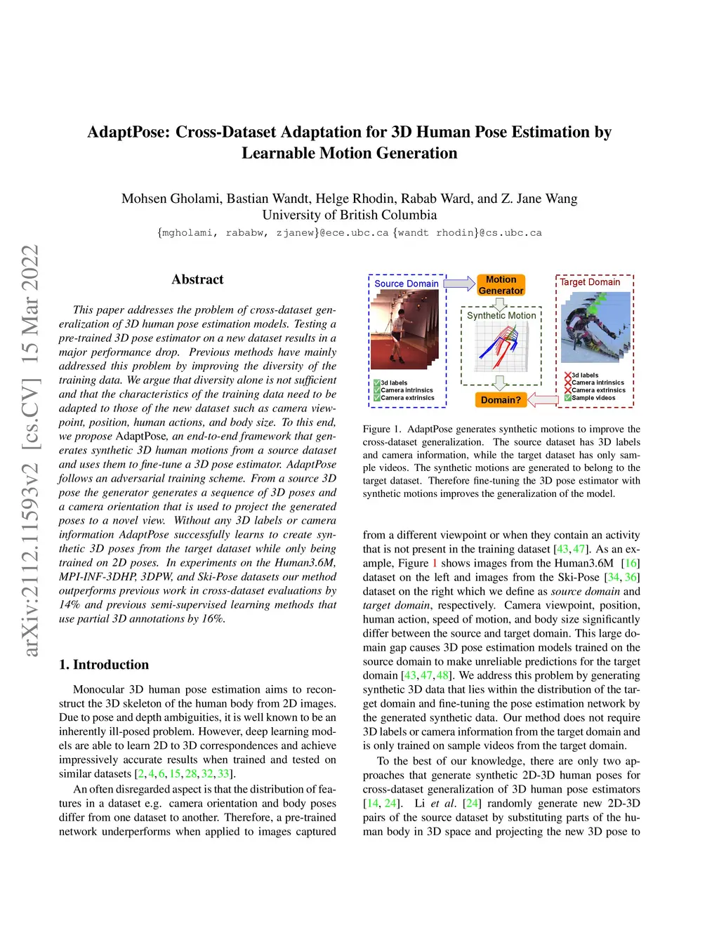 AdaptPose: Cross-Dataset Adaptation for 3D Human Pose Estimation by