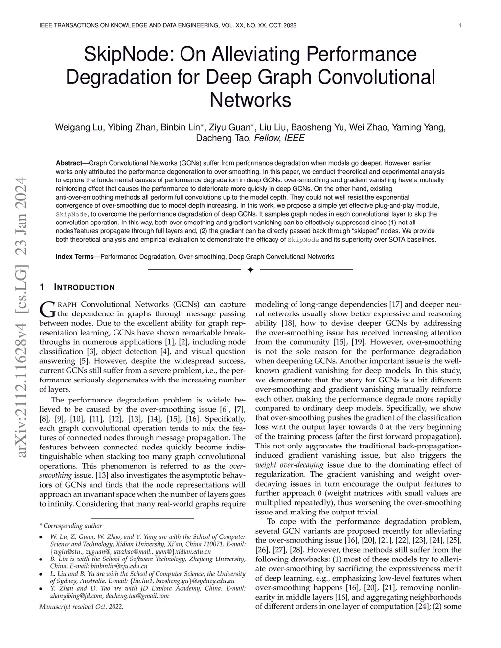 SkipNode: On Alleviating Performance Degradation for Deep Graph
