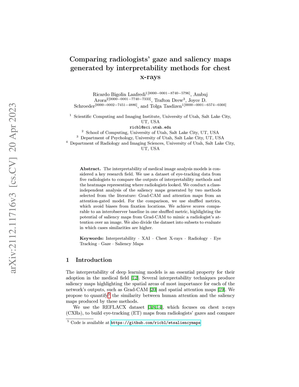 Comparing radiologists' gaze and saliency maps generated by