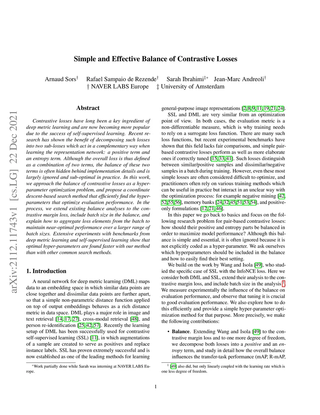 Contrastive losses have long been a key ingredient of deep metric learning and are now becoming more popular due to the success of self-supervised learning. Recent research has shown the benefit of decomposing such losses into two sub-losses which act in a complementary way when learning the representation network: a positive term and an entropy term. Although the overall loss is thus defined as a combination of two terms, the balance of these two terms is often hidden behind implementation details and is largely ignored and sub-optimal in practice. In this work, we approach the balance of contrastive losses as a hyper-parameter optimization problem, and propose a coordinate descent-based search method that efficiently find the hyper-parameters that optimize evaluation performance. In the process, we extend existing balance analyses to the contrastive margin loss, include batch size in the balance, and explain how to aggregate loss elements from the batch to maintain near-optimal performance over a larger range of batch sizes. Extensive experiments with benchmarks from deep metric learning and self-supervised learning show that optimal hyper-parameters are found faster with our method than with other common search methods.
