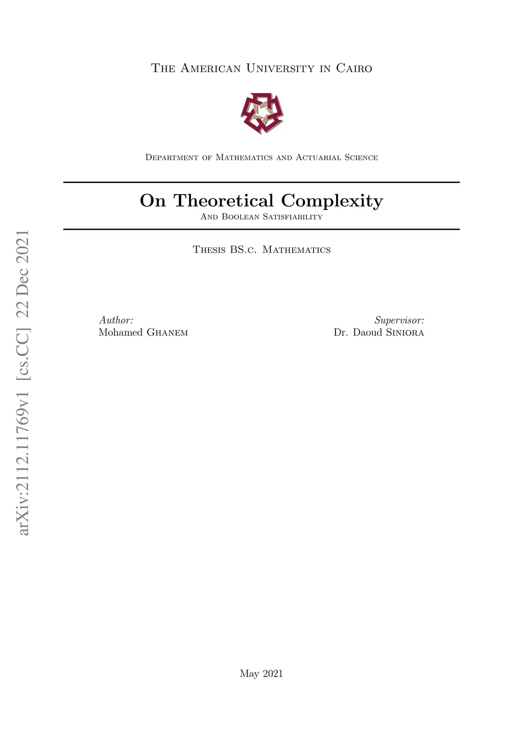 Theoretical complexity is a vital subfield of computer science that enables us to mathematically investigate computation and answer many interesting queries about the nature of computational problems. It provides theoretical tools to assess time and space requirements of computations along with assessing the difficultly of problems - classifying them accordingly. It also garners at its core one of the most important problems in mathematics, namely, the millennium problem. In essence, this problem asks whether solution and verification reside on two different levels of difficulty. In this thesis, we introduce some of the most central concepts in the Theory of Computing, giving an overview of how computation can be abstracted using Turing machines. Further, we introduce the two most famous problem complexity classes and along with the relationship between them. In addition, we explicate the concept of problem reduction and how it is an essential tool for making hardness comparisons between different problems. Later, we present the problem of Boolean Satisfiability (SAT) which lies at the center of NP-complete problems. We then explore some of its tractable as well as intractable variants such as Horn-SAT and 3-SAT, respectively. Last but not least, we establish polynomial-time reductions from 3-SAT to some of the famous NP-complete graph problems, namely, Clique Finding, Hamiltonian Cycle Finding, and 3-Coloring.