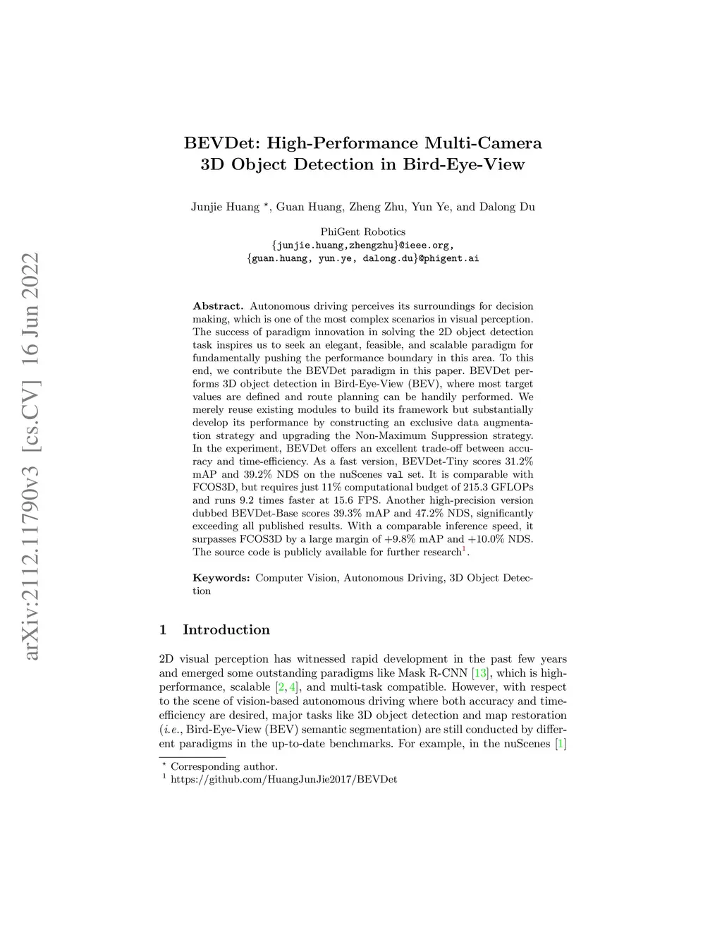 BEVDet: High-performance Multi-camera 3D Object Detection in