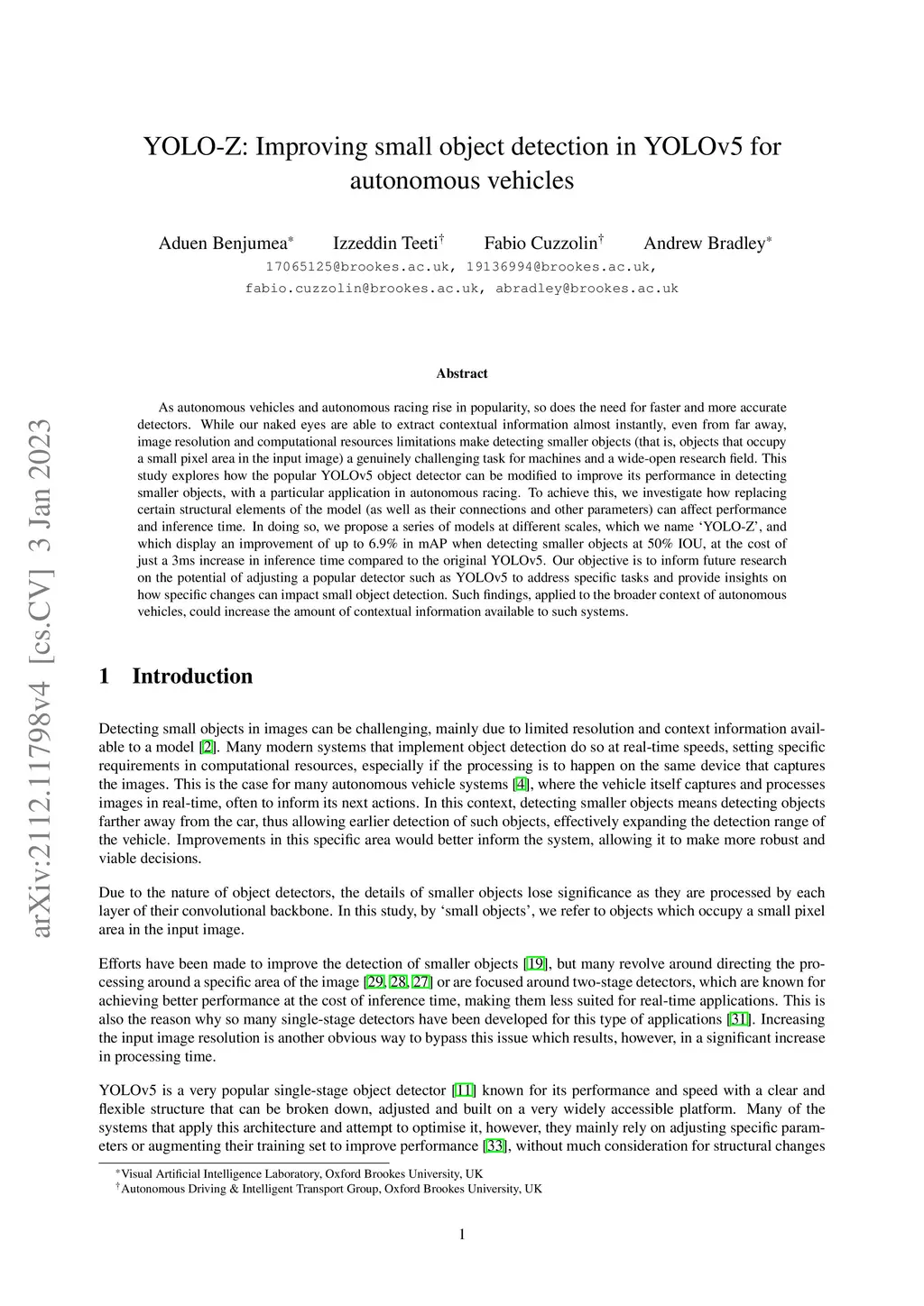 YOLO-Z: Improving small object detection in YOLOv5 for autonomous