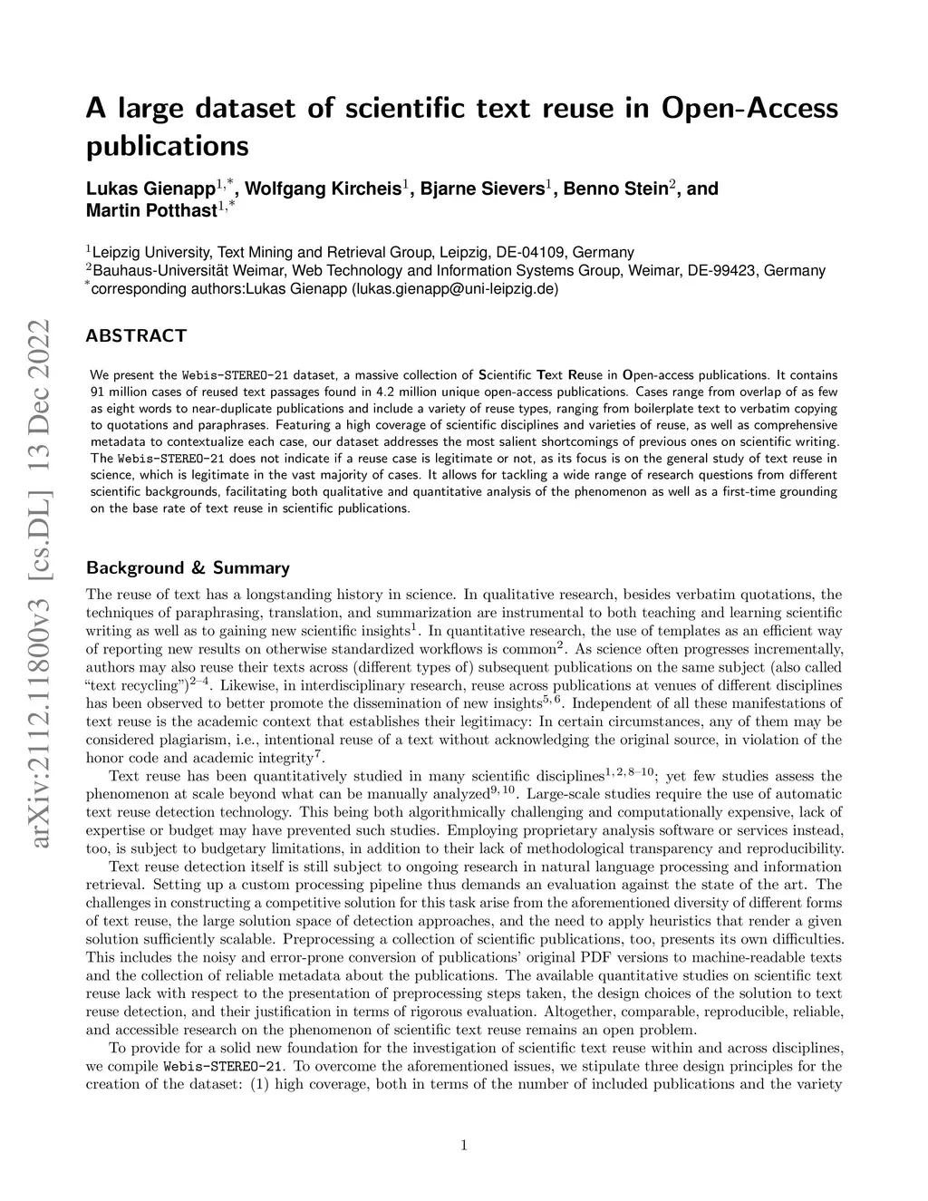 STEREO: Scientific Text Reuse in Open Access Publications