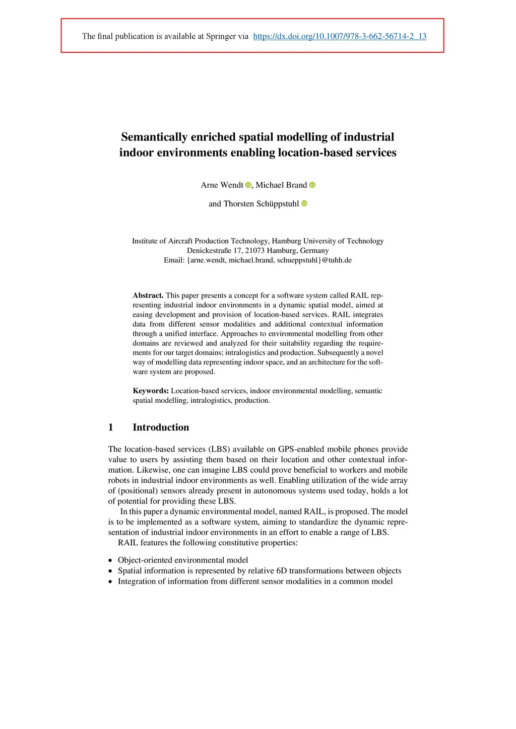 Semantically enriched spatial modelling of industrial indoor
