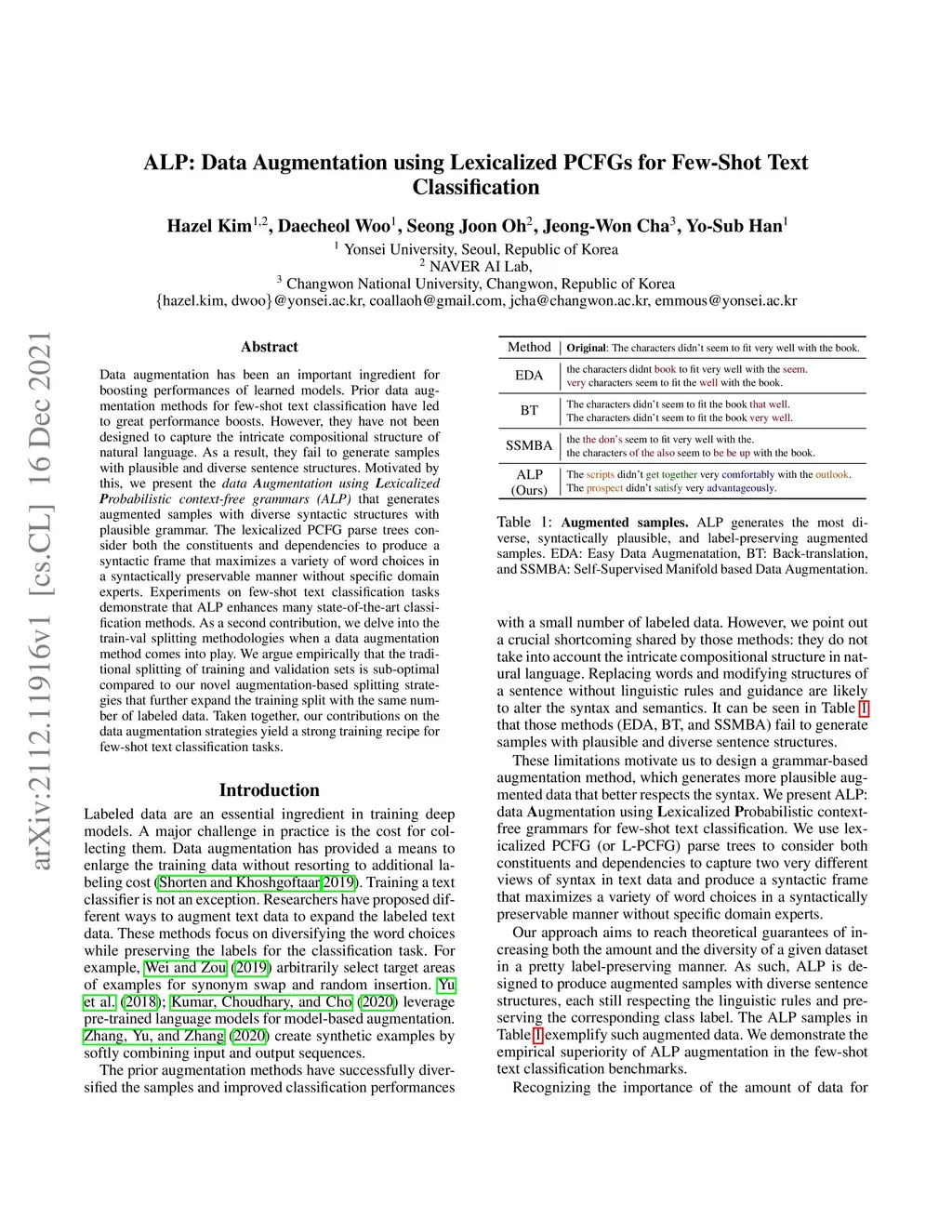ALP: Data Augmentation using Lexicalized PCFGs for Few-Shot Text
