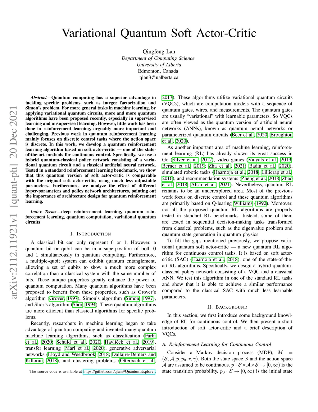 Variational Quantum Soft Actor-Critic