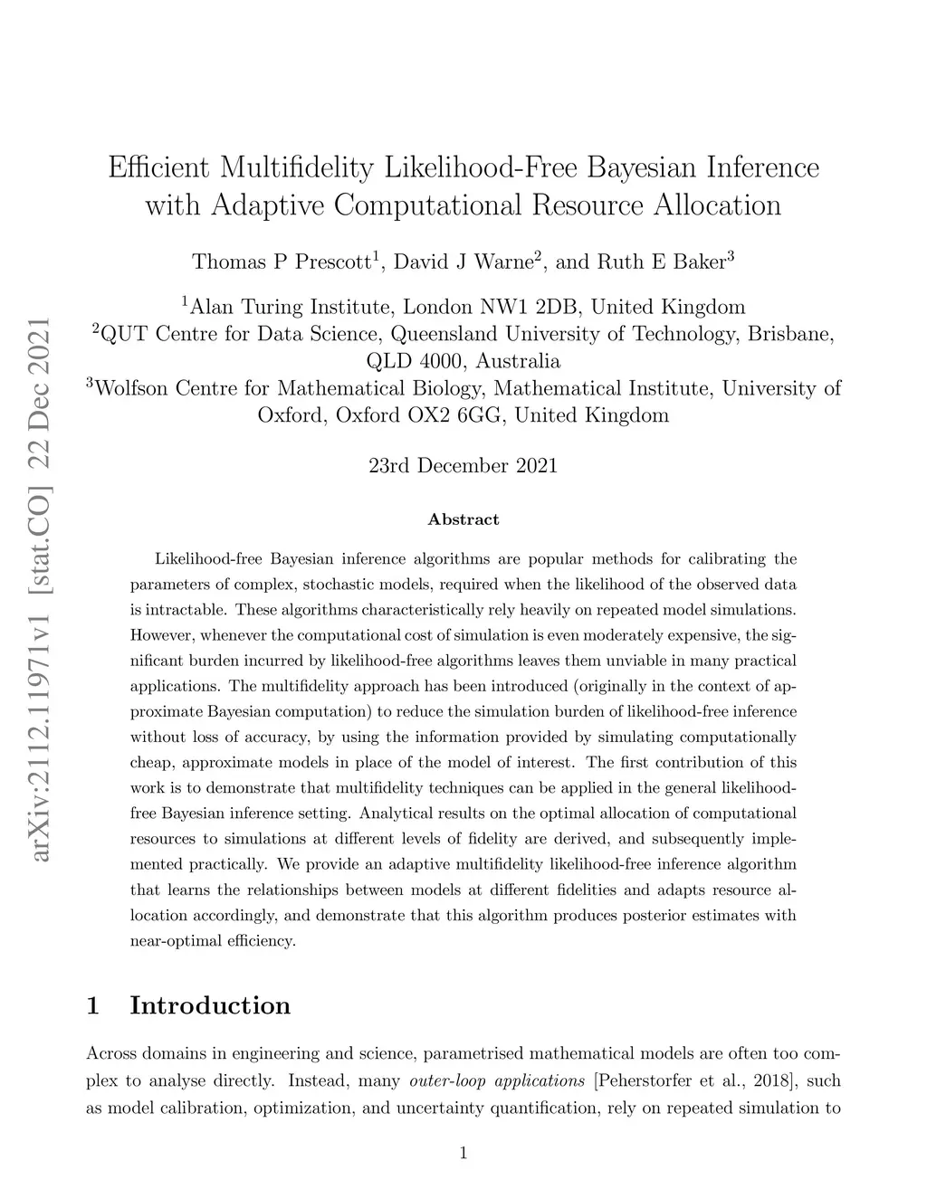 Likelihood-free Bayesian inference algorithms are popular methods for calibrating the parameters of complex, stochastic models, required when the likelihood of the observed data is intractable. These algorithms characteristically rely heavily on repeated model simulations. However, whenever the computational cost of simulation is even moderately expensive, the significant burden incurred by likelihood-free algorithms leaves them unviable in many practical applications. The multifidelity approach has been introduced (originally in the context of approximate Bayesian computation) to reduce the simulation burden of likelihood-free inference without loss of accuracy, by using the information provided by simulating computationally cheap, approximate models in place of the model of interest. The first contribution of this work is to demonstrate that multifidelity techniques can be applied in the general likelihood-free Bayesian inference setting. Analytical results on the optimal allocation of computational resources to simulations at different levels of fidelity are derived, and subsequently implemented practically. We provide an adaptive multifidelity likelihood-free inference algorithm that learns the relationships between models at different fidelities and adapts resource allocation accordingly, and demonstrate that this algorithm produces posterior estimates with near-optimal efficiency.