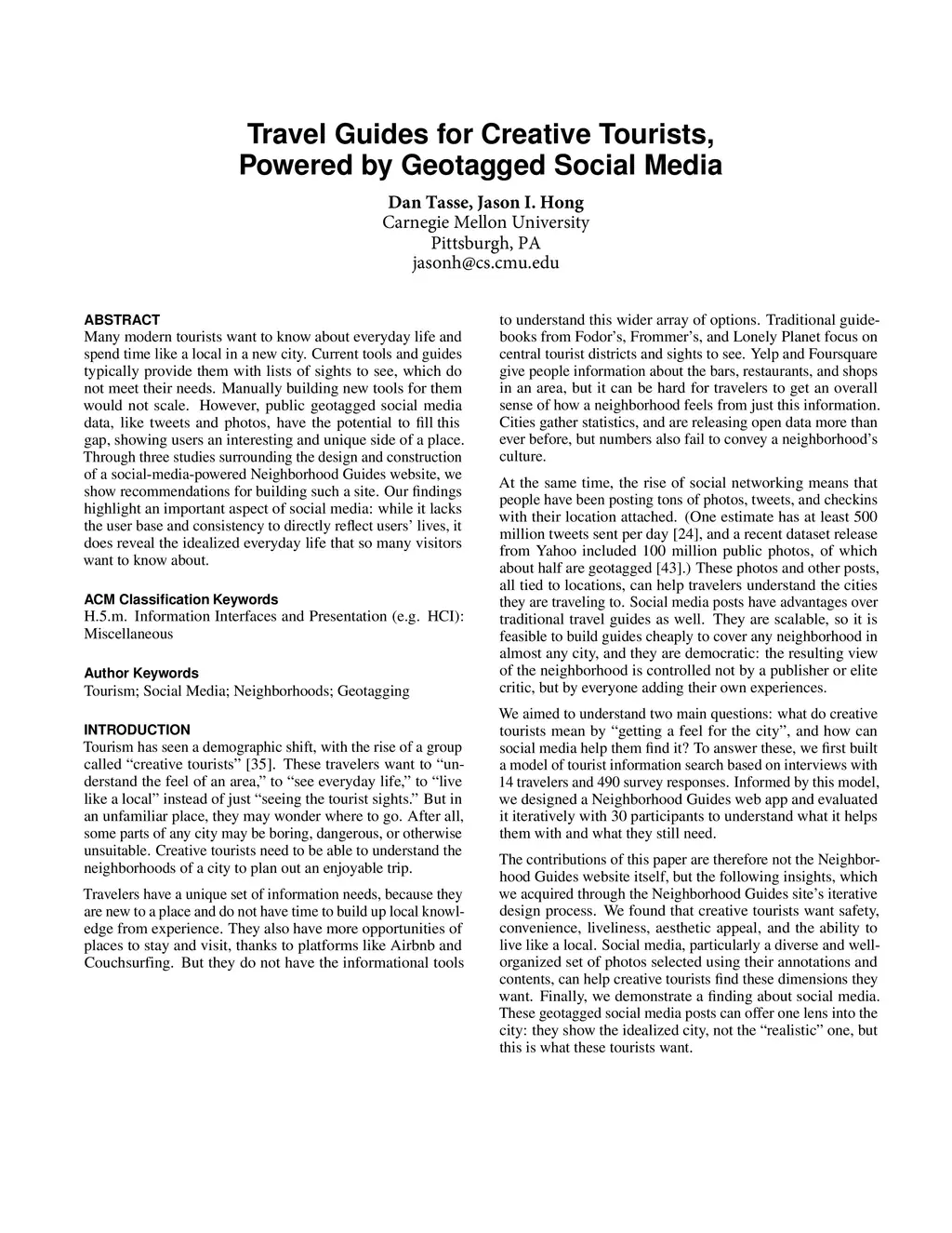 Travel Guides for Creative Tourists, Powered by Geotagged Social Media