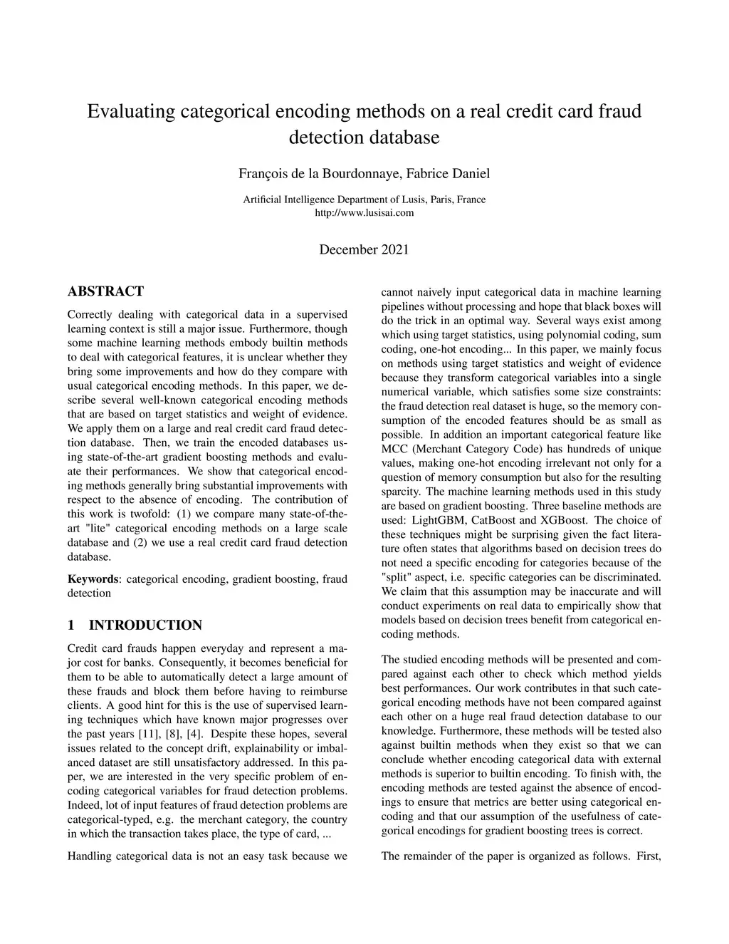Evaluating categorical encoding methods on a real credit card fraud