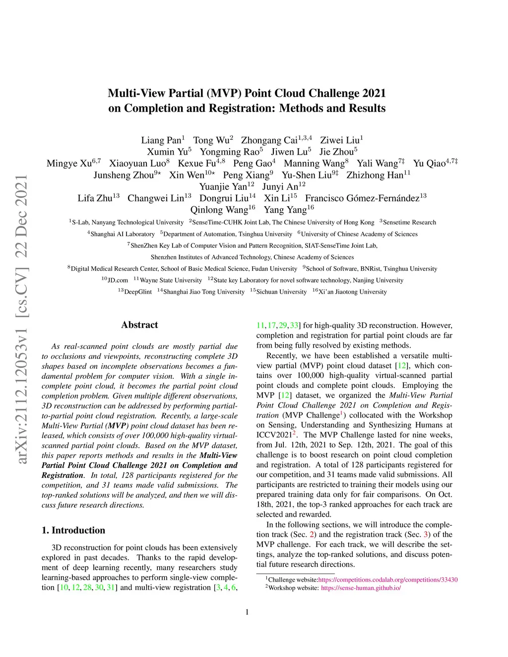 Multi-View Partial (MVP) Point Cloud Challenge 2021 on Completion and