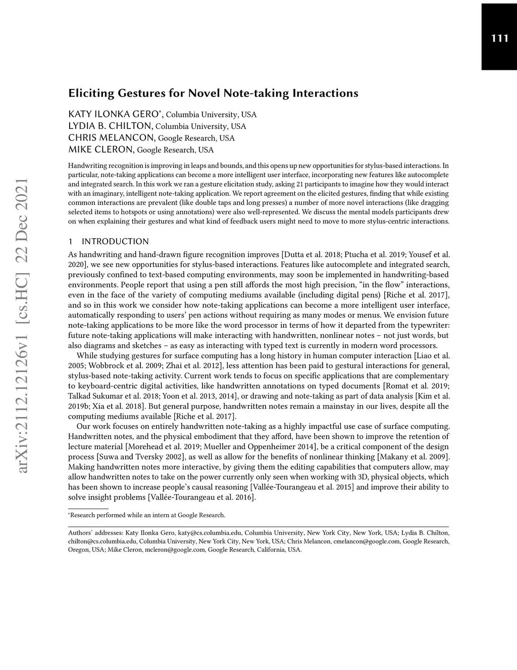 Eliciting Gestures for Novel Note-taking Interactions